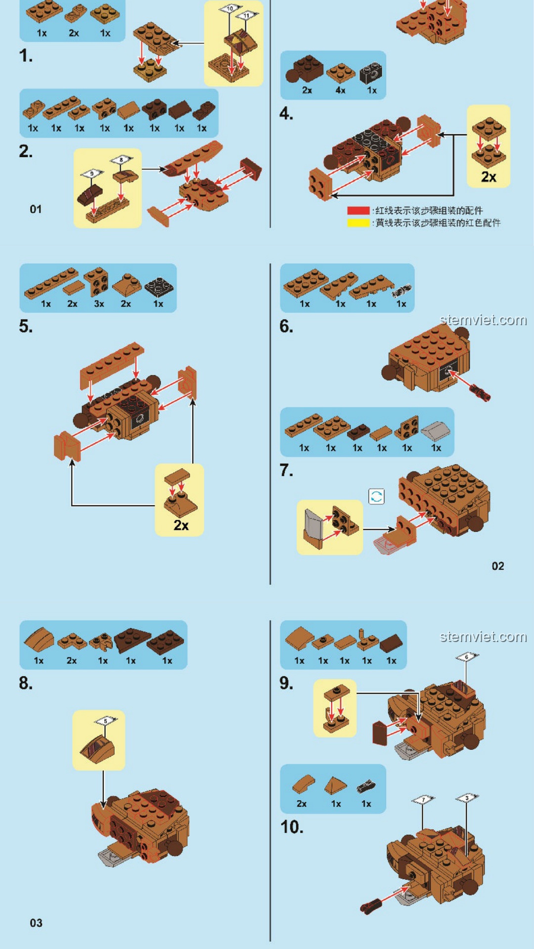 Hướng Dẫn Lắp Ráp SEMBO 11889 Mô hình Hoàng Trung Hỏa Pháo PDF Gốc Chất Lượng Cao