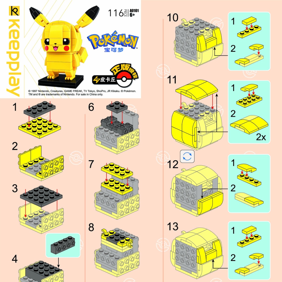 Bạn đang tìm kiếm sách hướng dẫn Keeppley A0101 Chú chuột điện Pikachu hoặc hướng dẫn lắp ghép Keeppley 0101 Pikachu dễ thương? Kho đồ chơi trẻ em mang đến giải pháp hoàn hảo với sách lắp ghép Keeppley 101 Pikachu dạng PDF gốc, chất lượng cao từ nhà sản xuất. Dù bạn có lỡ làm mất sách hướng dẫn Keeppley A0101 Linh vật Pikachu hay thiếu hướng dẫn Keeppley A0101, chúng tôi luôn sẵn sàng hỗ trợ bạn download pdf sách lắp ghép Pikachu đáng yêu Keeppley.