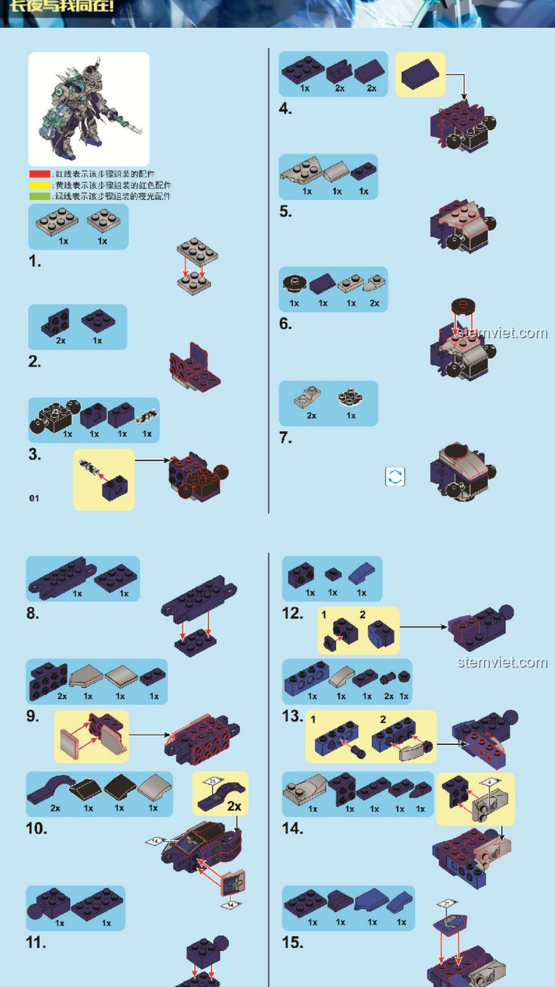 SEMBO 11894 Hướng Dẫn Lắp Ráp Mô Hình Chiến Thần Băng Phong Quan Vũ và Ngựa PDF Gốc Chất Lượng Cao