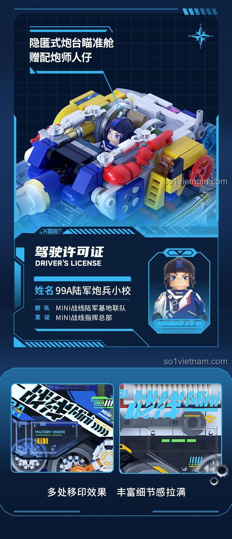 • Tặng kèm minifigure pháo thủ: Bé có thể đặt minifigure vào vị trí lái, tạo nên một kịch bản chiến đấu sống động.