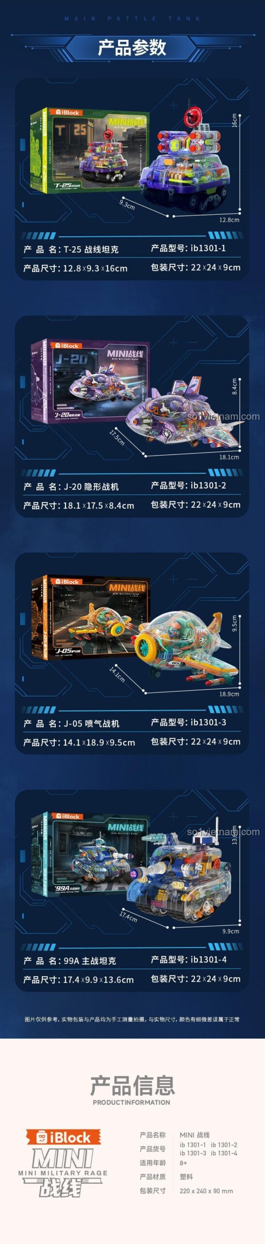 iBlock ib1301-4 Xe Tăng Chiến Đấu Chủ Lực 99A – Mô Hình Lắp Ghép Nửa Trong Suốt