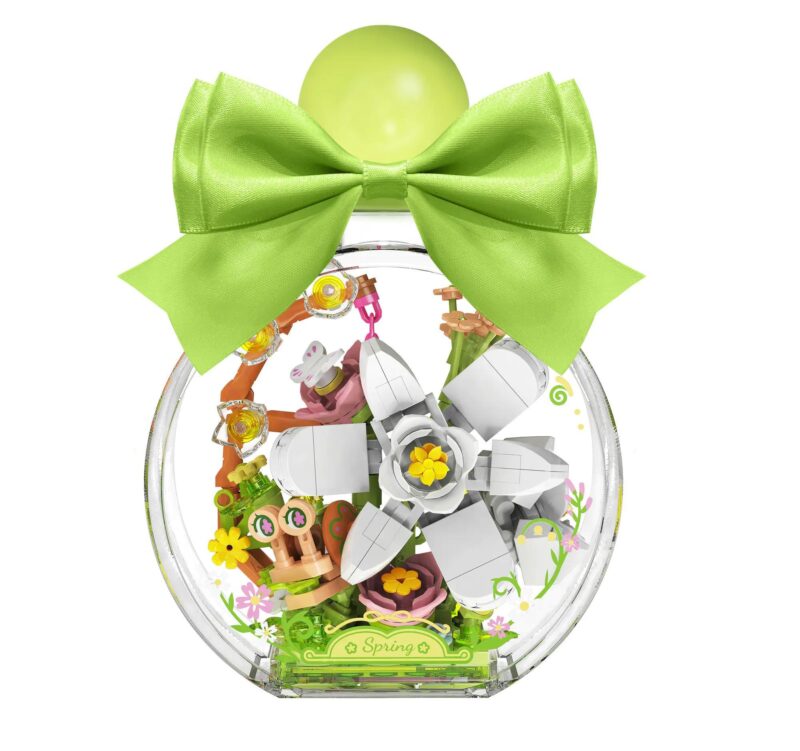 Bộ lắp ghép iBlock ib2101-1 “Bình Hoa Mùa Xuân” nổi bật với thiết kế hình bình hoa trong suốt, bên trong là một khu vườn mùa xuân thu nhỏ đầy màu sắc. Những cánh hoa trắng muốt, nụ hoa hồng xinh xắn, những bông cúc vàng rực rỡ cùng chú ốc sên ngộ nghĩnh tạo nên một bức tranh sống động, gợi cảm giác về sự sinh sôi và khởi đầu mới.