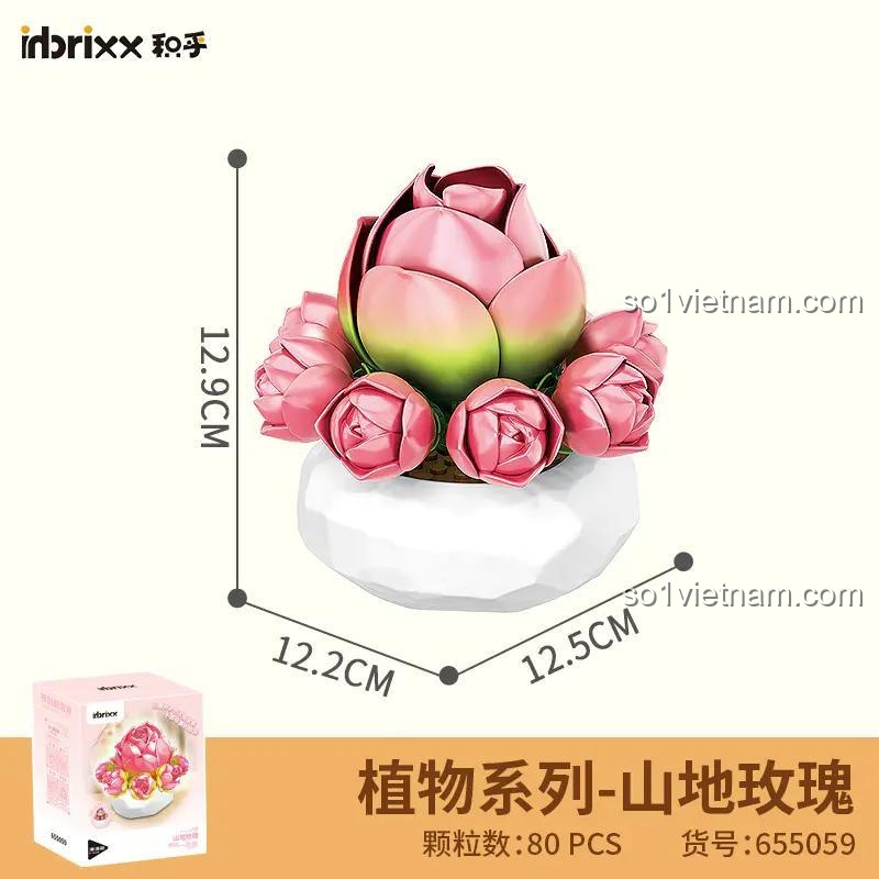 Bộ lắp ghép inbrixx 655059 là một kiệt tác của sự tỉ mỉ và sáng tạo, mang đến 10 mẫu cây mọng nước chậu cảnh độc đáo, mỗi mẫu là một câu chuyện riêng về vẻ đẹp của tự nhiên. Từ những cánh hoa hồng núi (Hoa Hồng Núi) mềm mại, những chiếc lá tròn trịa của Gấu Con, đến sắc hồng cam rực rỡ của Cam Mộng Lộ, mỗi chi tiết đều được chăm chút để đạt độ chân thực cao nhất. Các màu sắc chủ đạo như Hồng, Xanh lá, Tím, Cam và Trắng (cho chậu) hòa quyện tạo nên một tổng thể hài hòa, bắt mắt, phù hợp với mọi không gian trang trí.