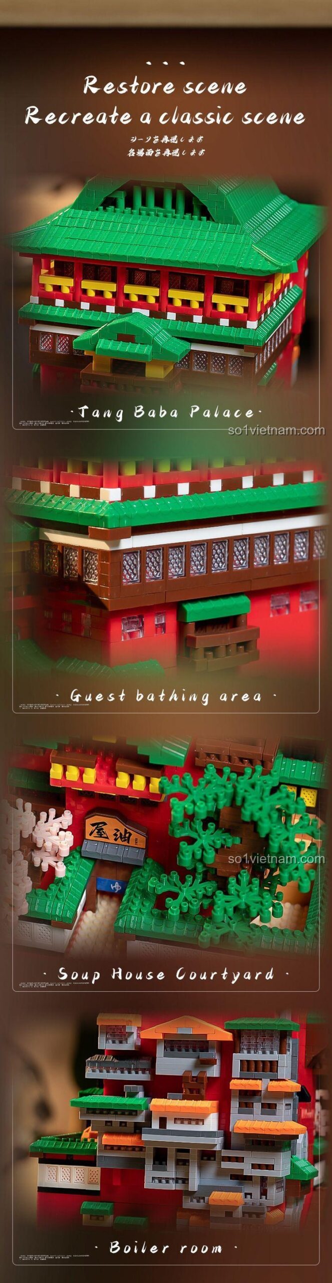 Bộ phim Spirited Away của Studio Ghibli đã chinh phục trái tim của hàng triệu khán giả trên toàn thế giới. Nhà Tắm Của Bà Chị Yubaba không chỉ là bối cảnh chính của câu chuyện mà còn là một biểu tượng văn hóa. Với bộ lắp ghép này, bạn có thể tái hiện lại những khoảnh khắc đáng nhớ, từ cuộc gặp gỡ với No-Face, đến những hoạt động nhộn nhịp trong nhà tắm. Đây là món quà hoàn hảo cho bất kỳ fan hâm mộ nào của Spirited Away, mang đến niềm vui sáng tạo và một vật phẩm trang trí độc đáo.