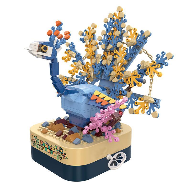 Bộ lắp ghép Hộp nhạc khổng tước JAKI JK1503 là minh chứng cho sự tinh tế trong thiết kế và sự tỉ mỉ trong từng chi tiết. Với màu sắc chủ đạo là xanh dương, vàng, kem, hồng và cam, mô hình khổng tước xòe đuôi hiện lên rực rỡ và sống động như thật. Từng mảnh ghép được chế tác cẩn thận, tạo nên bộ lông đuôi xòe rộng đầy ấn tượng, mô phỏng hoàn hảo vẻ đẹp tự nhiên của loài chim công.