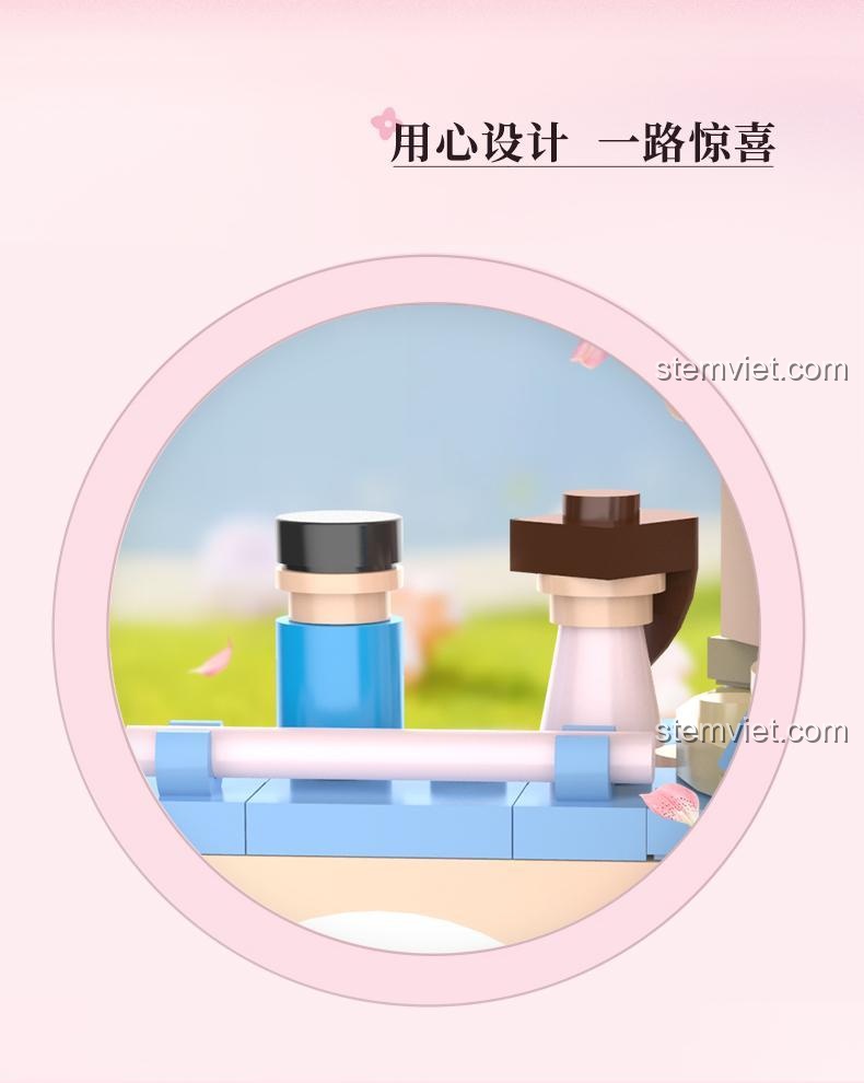 Điểm nhấn đặc biệt của mô hình lâu đài phát nhạc JAKI JK1615 chính là tính năng hộp nhạc và khả năng xoay kỳ diệu. Chỉ cần vặn dây cót, lâu đài sẽ bắt đầu phát ra những giai điệu du dương, êm ái, đưa bé vào thế giới của những giấc mơ cổ tích. Không cần pin, không cần sạc, tính năng động cơ dây cót bền bỉ này mang lại sự tiện lợi và an toàn tối đa cho trẻ nhỏ. Cùng lúc đó, một đoàn tàu hỏa nhỏ xinh xắn sẽ xoay vòng quanh chân lâu đài, tạo nên một cảnh tượng sống động và đầy cuốn hút. Sự kết hợp giữa âm thanh và chuyển động không chỉ làm tăng thêm sự hấp dẫn cho đồ chơi mô hình Lâu đài âm nhạc JK1615 mà còn kích thích các giác quan của bé, giúp bé phát triển khả năng cảm thụ âm nhạc và nhận biết không gian. Đây thực sự là một bộ lắp ghép độc đáo, mang đến trải nghiệm chơi đa chiều và đầy bất ngờ.