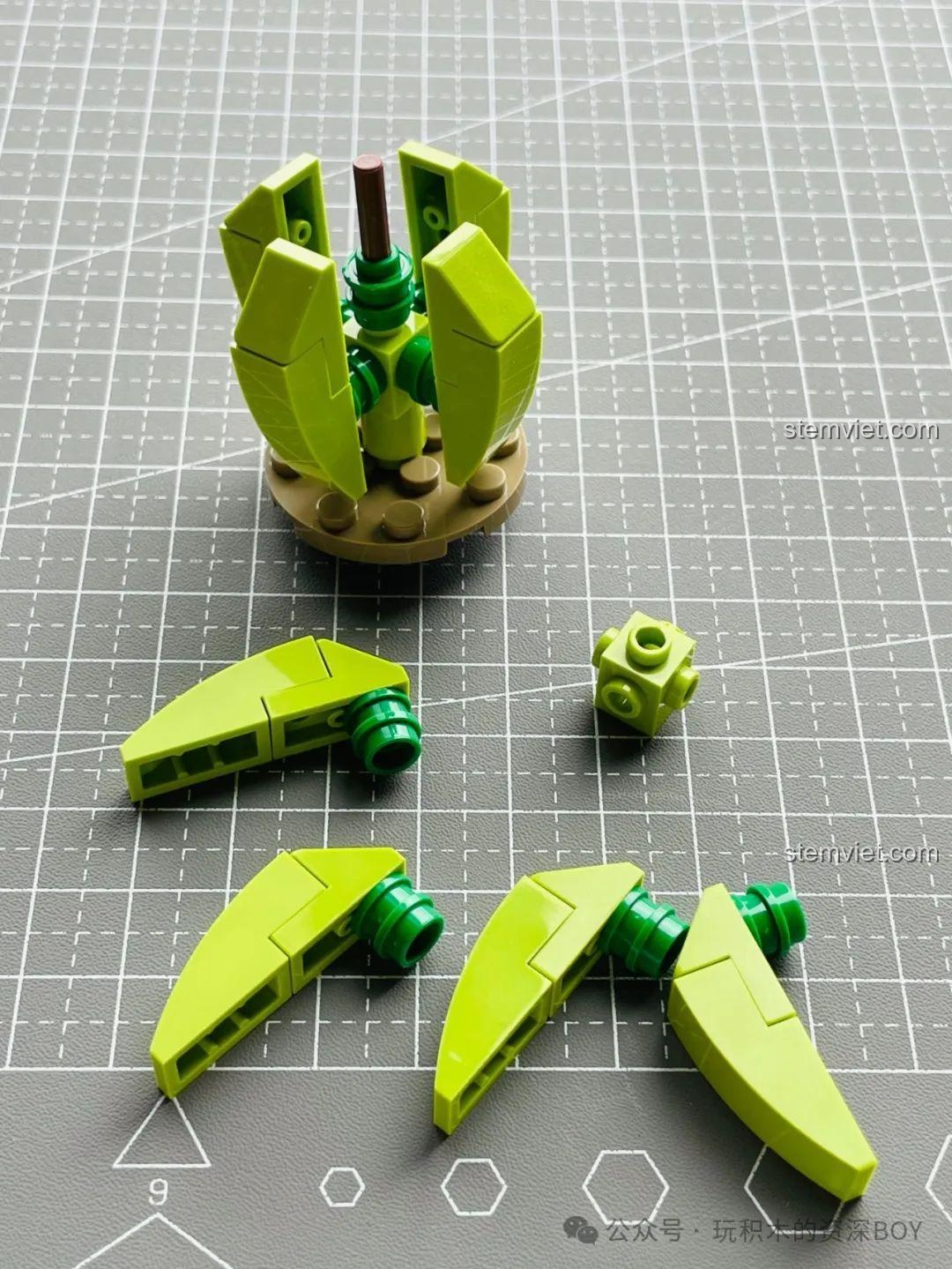 - Lắp được 3 kiểu riêng biệt: Bé có thể lắp hoàn chỉnh từng chậu cây và trưng bày chúng ở những vị trí khác nhau.