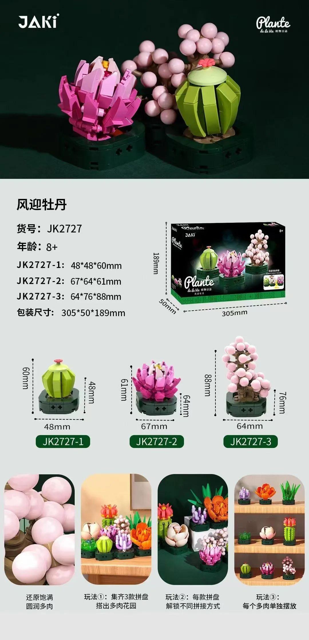 Ngay từ cái nhìn đầu tiên, bộ sản phẩm JAKI JK2727 đã chinh phục mọi ánh nhìn bởi thiết kế tinh xảo và màu sắc sống động. Bộ sưu tập bao gồm 3 mẫu cây riêng biệt, mỗi mẫu mang một nét độc đáo riêng: