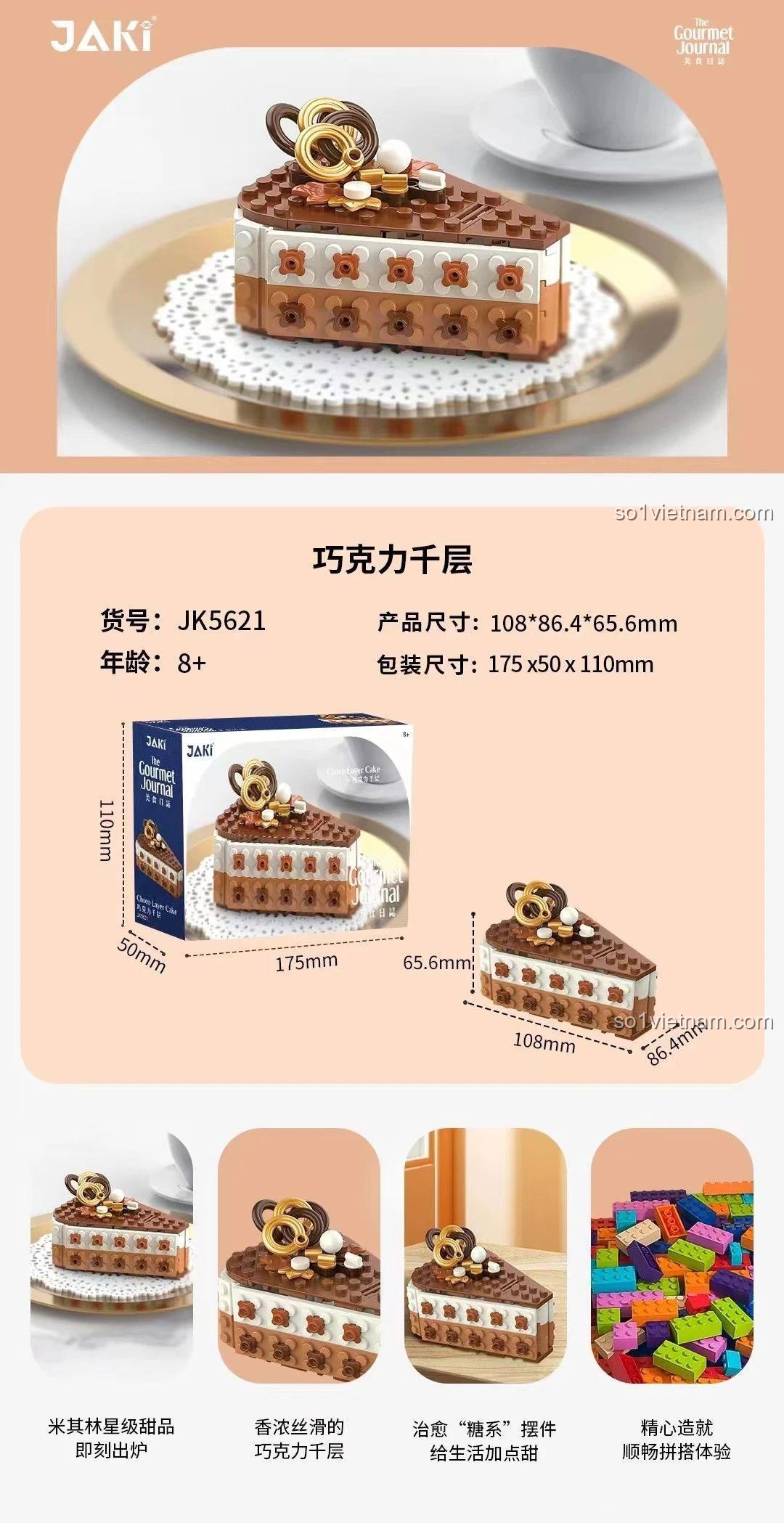 JAKI JK5621: Bộ Lắp Ghép Bánh Kem Sô Cô La Nhiều Lớp Ngọt Ngào & Tinh Tế (10.8cm)