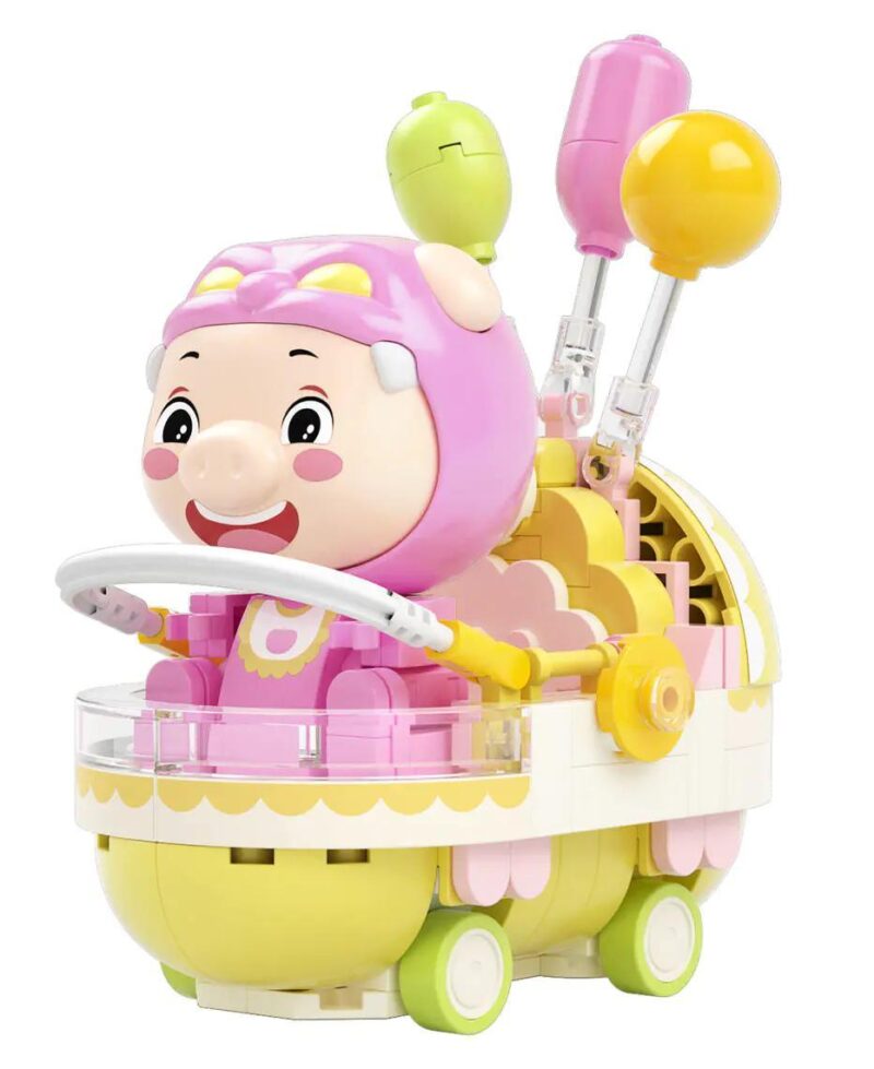 Các chi tiết như bóng bay màu hồng, vàng và xanh lá phía sau xe, cùng với tay lái tròn xinh xắn, tạo nên một tổng thể hài hòa và thu hút. Kích thước mô hình sau khi lắp ráp (11.5 x 8 x 11.5 cm) vừa vặn để bé có thể trưng bày trên bàn học hoặc mang theo bên mình. Mỗi mảnh ghép được chế tác tỉ mỉ, đảm bảo độ khít cao khi lắp ráp, mang lại trải nghiệm hoàn thiện sản phẩm một cách trọn vẹn.