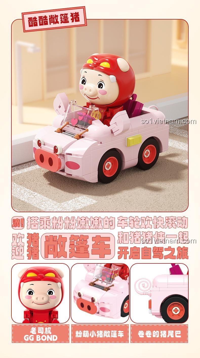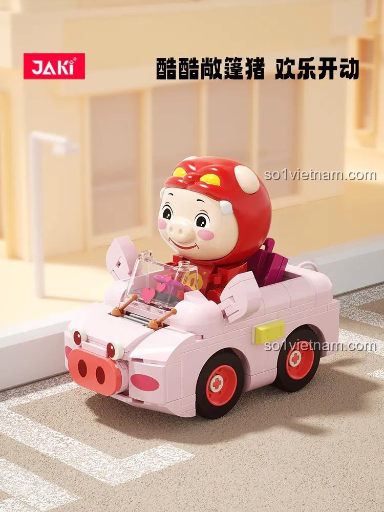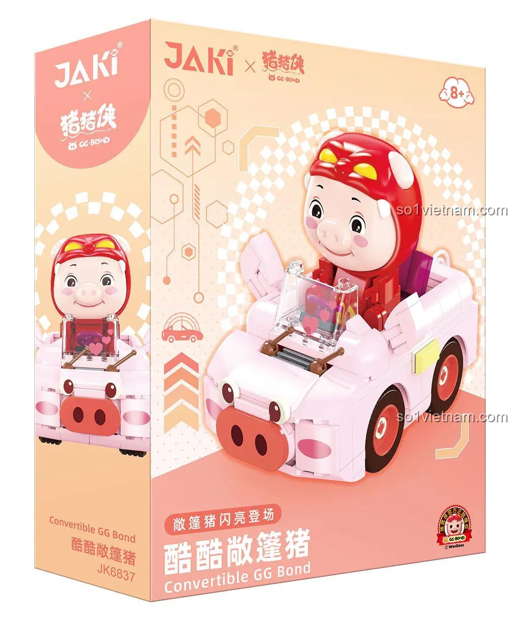 Bộ lắp ghép Xe Convertible GG Bond JAKI JK6837 không chỉ đơn thuần là việc lắp ráp các mảnh ghép lại với nhau. Điểm đặc biệt của sản phẩm này là bé có thể đặt nhân vật GG Bond vào trong xe, tạo ra những câu chuyện và màn nhập vai thú vị. Chiếc xe mui trần màu hồng này là phương tiện hoàn hảo cho GG Bond khám phá thế giới, tham gia các cuộc đua tưởng tượng hay đơn giản là dạo chơi. Các chi tiết nhỏ như bánh xe, kính chắn gió, và cả trái tim trang trí trên kính đều góp phần tạo nên sự sinh động và hấp dẫn cho mô hình.