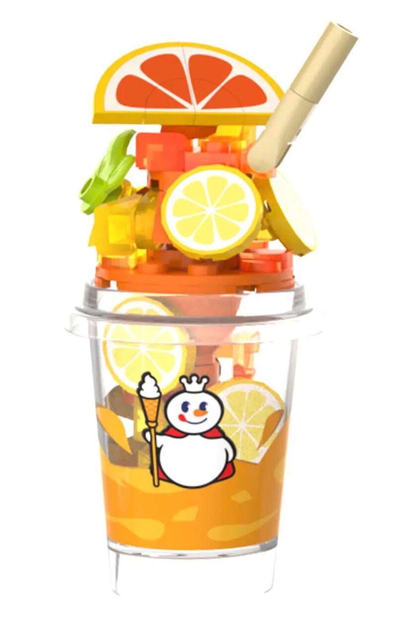 Bộ lắp ghép JAKI XWZB-23025 tái hiện một cách tinh tế và đáng yêu ly trà chanh Mixue Bingcheng, với những chi tiết mô phỏng chân thực:
