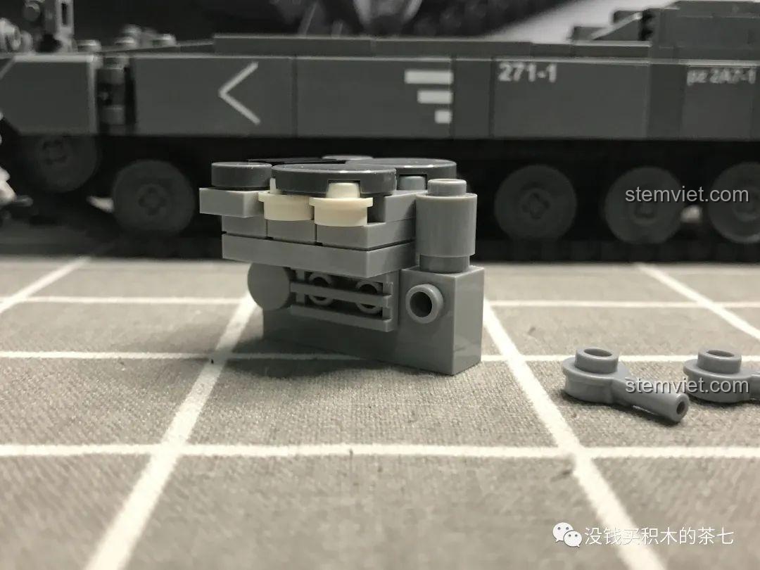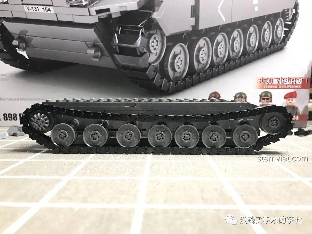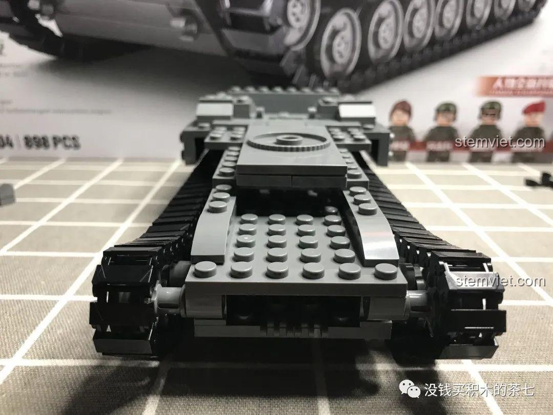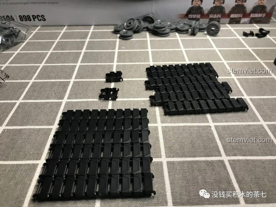 • Bánh xích di chuyển linh hoạt: Hệ thống bánh xích được lắp ráp từ 124 mảnh ghép riêng lẻ, cho phép xe tăng di chuyển mượt mà trên nhiều bề mặt, mô phỏng chuyển động của xe tăng thật.