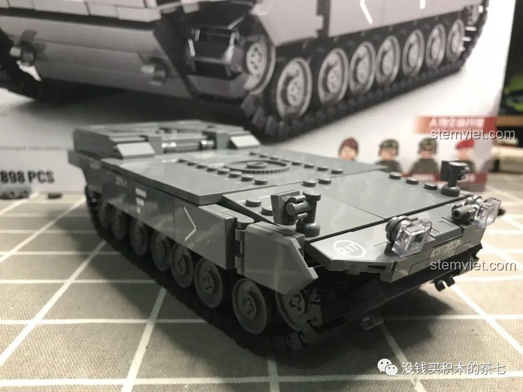 Khám phá bộ lắp ráp Jiazhi SY 0104 Xe Tăng Chiến Đấu Chủ Lực Leopard 2A7+ với 898 mảnh ghép chất lượng cao, tương thích LEGO®. Mô hình xe tăng Đức chân thực, có tháp pháo xoay, nòng pháo nâng hạ và bánh xích di chuyển linh hoạt. Đi kèm 4 minifigure lính Đức in 360 độ, mang lại trải nghiệm chơi nhập vai sống động. Sản phẩm giúp bé trai 6 tuổi phát triển tư duy logic, khả năng giải quyết vấn đề, phối hợp tay mắt và sự kiên nhẫn. Đây là lựa chọn tiết kiệm, giá tốt mà vẫn đảm bảo chất lượng vượt trội, giúp bé thỏa mãn đam mê quân sự và sáng tạo không giới hạn. Một món quà đáng tiền cho bé yêu của bạn!