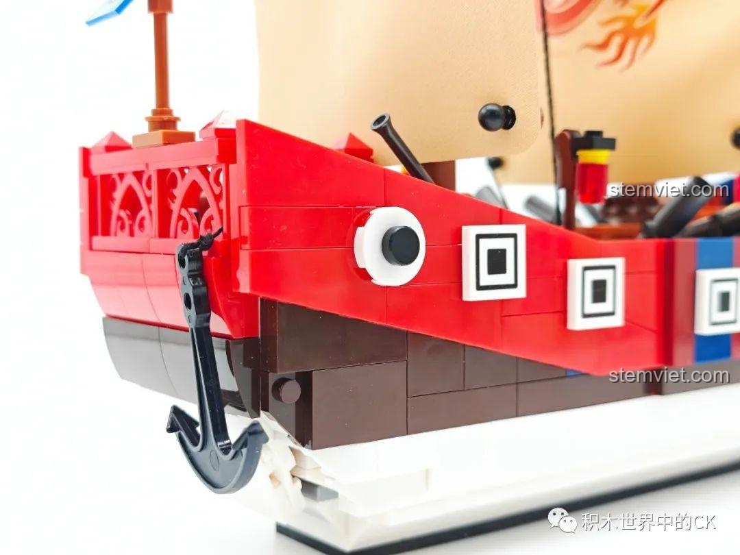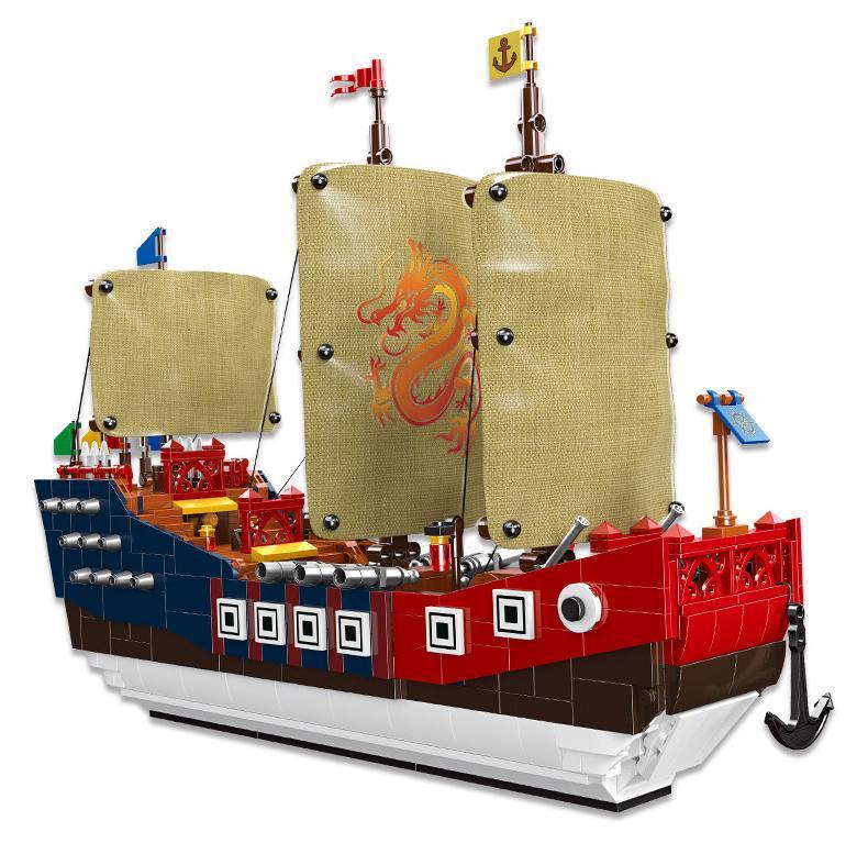 - Trí tưởng tượng và sáng tạo: Sau khi hoàn thành, bé có thể sáng tạo ra vô số câu chuyện và kịch bản chơi. Ví dụ: 1. Hạm đội thám hiểm của Trịnh Hòa ra khơi tìm vùng đất mới. 2. Cuộc đối đầu nảy lửa với tàu cướp biển. 3. Vận chuyển gốm sứ và tơ lụa trên con đường tơ lụa trên biển. 4. Trở thành soái hạm chỉ huy một trận hải chiến. 5. Một con tàu ma bí ẩn xuất hiện trong sương mù.