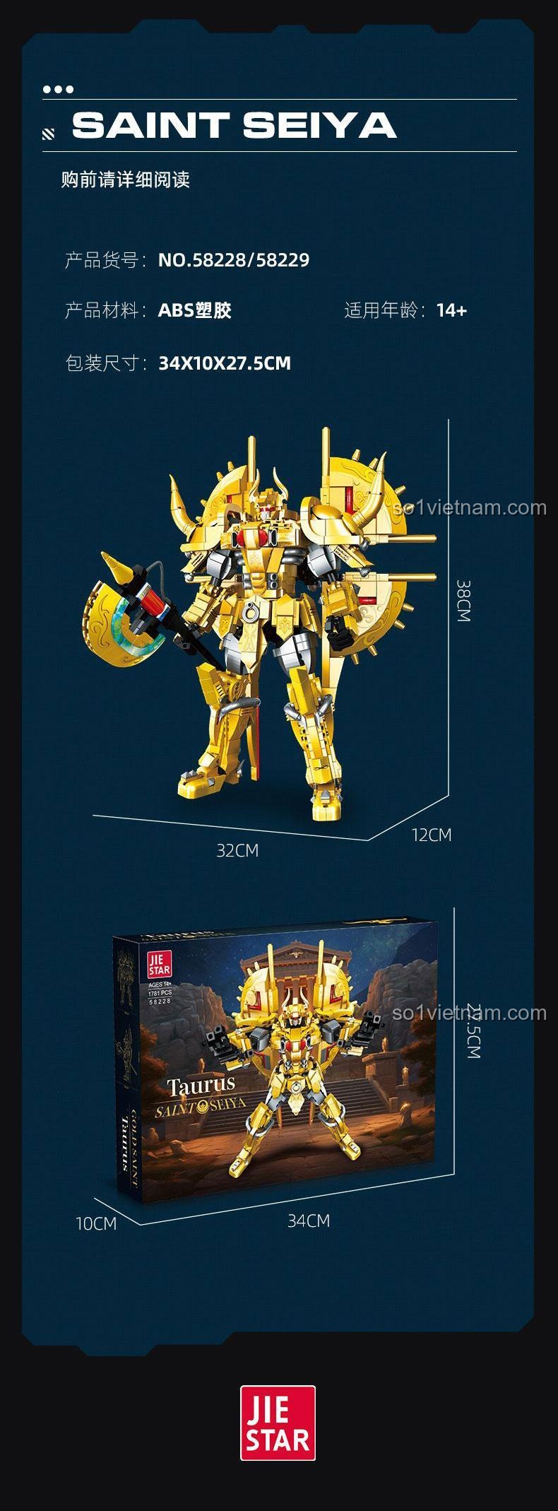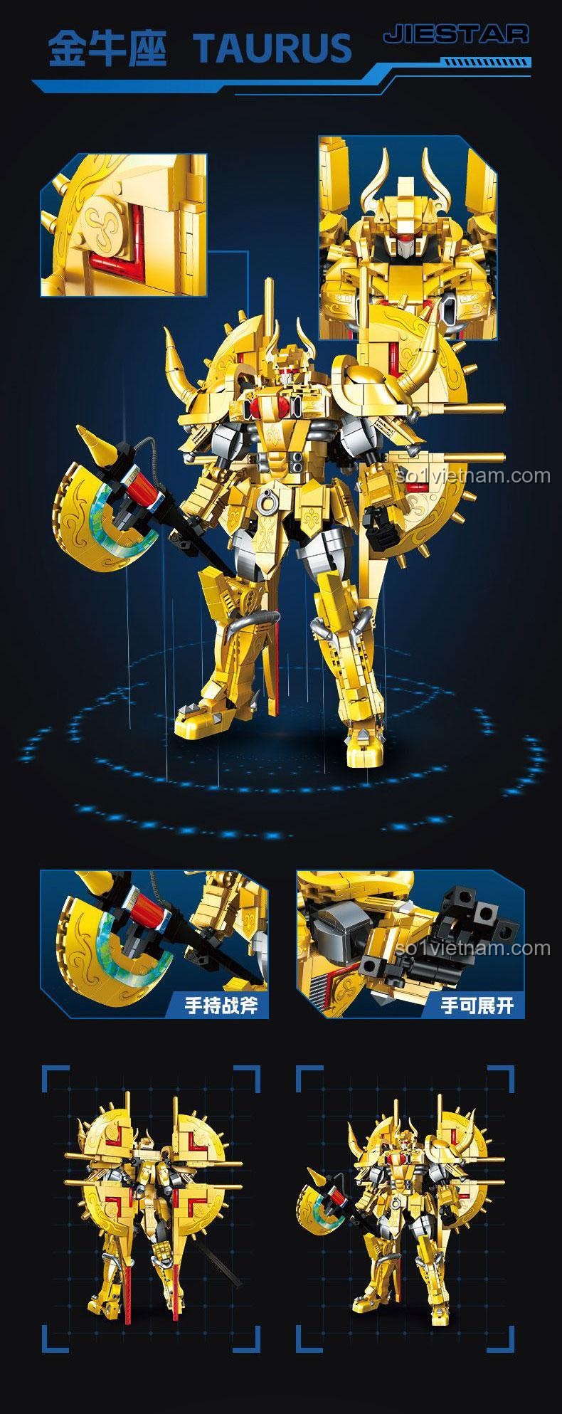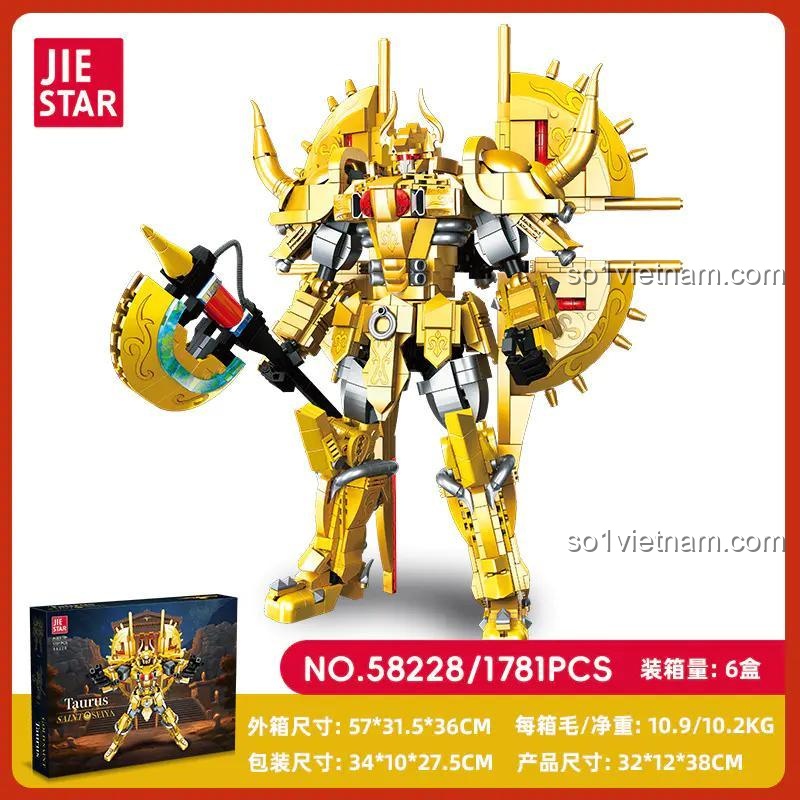 JIESTAR 58228: Bộ lắp ráp Robot Mecha Thánh Đấu Sĩ Kim Ngưu (1781 mảnh ghép) – Sức Mạnh Hoàng Kim