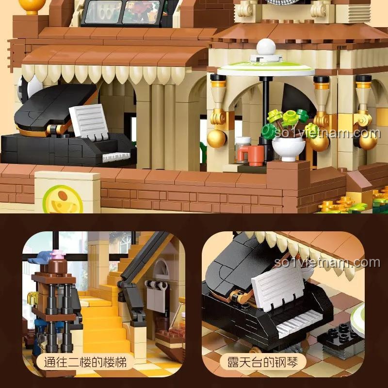 Bộ khối lắp ghép 89120 không chỉ đẹp về mặt hình thức mà còn ẩn chứa nhiều tính năng thú vị, mang lại giá trị vượt xa một mô hình trưng bày tĩnh. Tính năng nổi bật nhất chính là thiết kế module, một đặc trưng của dòng sản phẩm Modular Buildings cao cấp. Việc có thể tách rời các tầng giúp bạn dễ dàng tương tác với không gian bên trong, sắp xếp lại nội thất, hoặc thậm chí là sáng tạo thêm những câu chuyện của riêng mình. Bạn có thể tưởng tượng mình là người chủ quán, đang bận rộn pha chế những ly cà phê thơm lừng, hay là một vị khách đang thả hồn theo tiếng đàn piano trên sân thượng.