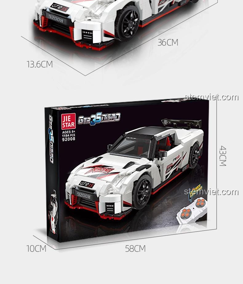 Kích thước của JIESTAR 92008 Siêu xe Nissan GTR35 Nismo sau khi lắp xong là bao nhiêu?