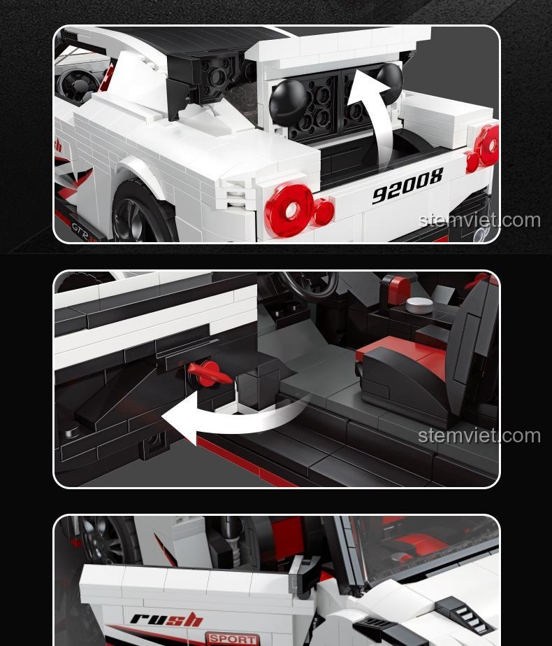 Điều làm nên sự khác biệt của JIESTAR 92008 Siêu xe Nissan GTR35 Nismo không chỉ nằm ở vẻ ngoài mà còn ở các tính năng tương tác thú vị. Bé có thể mở cửa xe để khám phá nội thất, xoay vô lăng, hay điều chỉnh cánh gió sau như một kỹ sư thực thụ. Đặc biệt nhất, đây là một trong những mô hình ‘RC-Upgradeable’. Điều này có nghĩa là bạn hoàn toàn có thể mua thêm bộ động cơ và điều khiển từ xa (Power Functions) để biến chiếc xe tĩnh thành một quái vật tốc độ có thể điều khiển được. Hãy tưởng tượng niềm vui của bé khi tự tay lắp ráp và sau đó điều khiển chiếc siêu xe của mình lao vun vút trên sàn nhà. Đây là một tính năng đắt giá, mang lại giá trị chơi lâu dài và không bao giờ nhàm chán.