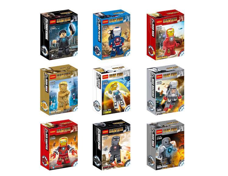 Bộ sản phẩm này bao gồm 9 minifigure siêu anh hùng khác nhau, mỗi nhân vật được đóng gói trong một hộp nhỏ riêng biệt. Các nhân vật bao gồm Tony Stark, Iron Patriot, Iron Man (Đỏ), Iron Man (Vàng), Gemini, War Machine, Red Snapper, Night Club và Iron Man (Xám xanh).
