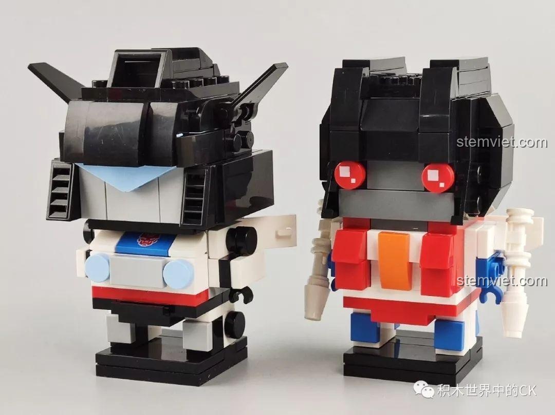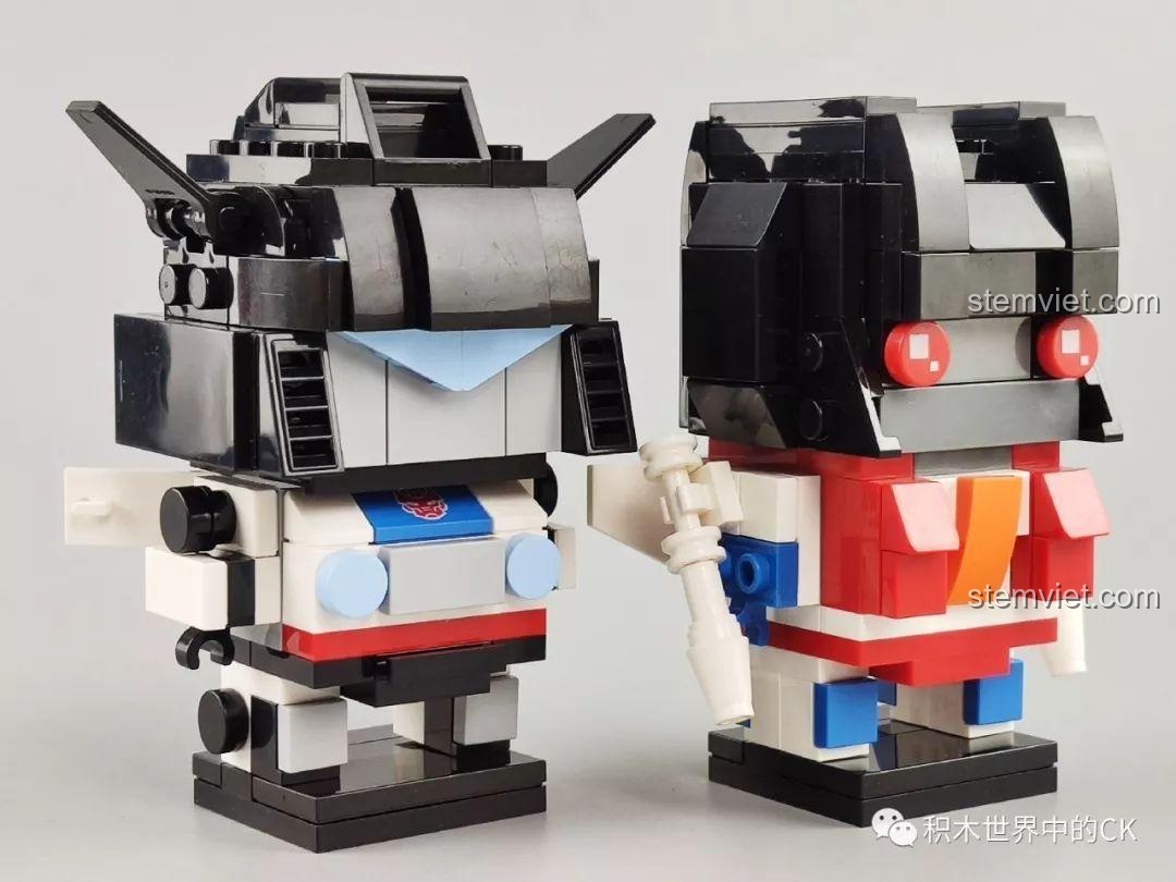 Điểm đặc biệt nhất của đồ chơi xếp hình JiSi 6865 chính là phong cách thiết kế BrickHeadz ngộ nghĩnh. Với chiếc đầu vuông vức đặc trưng, đôi mắt to tròn đáng yêu, mô hình Dark Jazz vẫn giữ được trọn vẹn thần thái của nhân vật gốc qua cách phối màu đen-trắng-xám kinh điển. Từng chi tiết nhỏ như phần mặt nạ, biểu tượng Autobot trên ngực đều được tái hiện một cách tinh tế, tạo nên một tổng thể hài hòa, vừa ngầu lại vừa dễ thương.