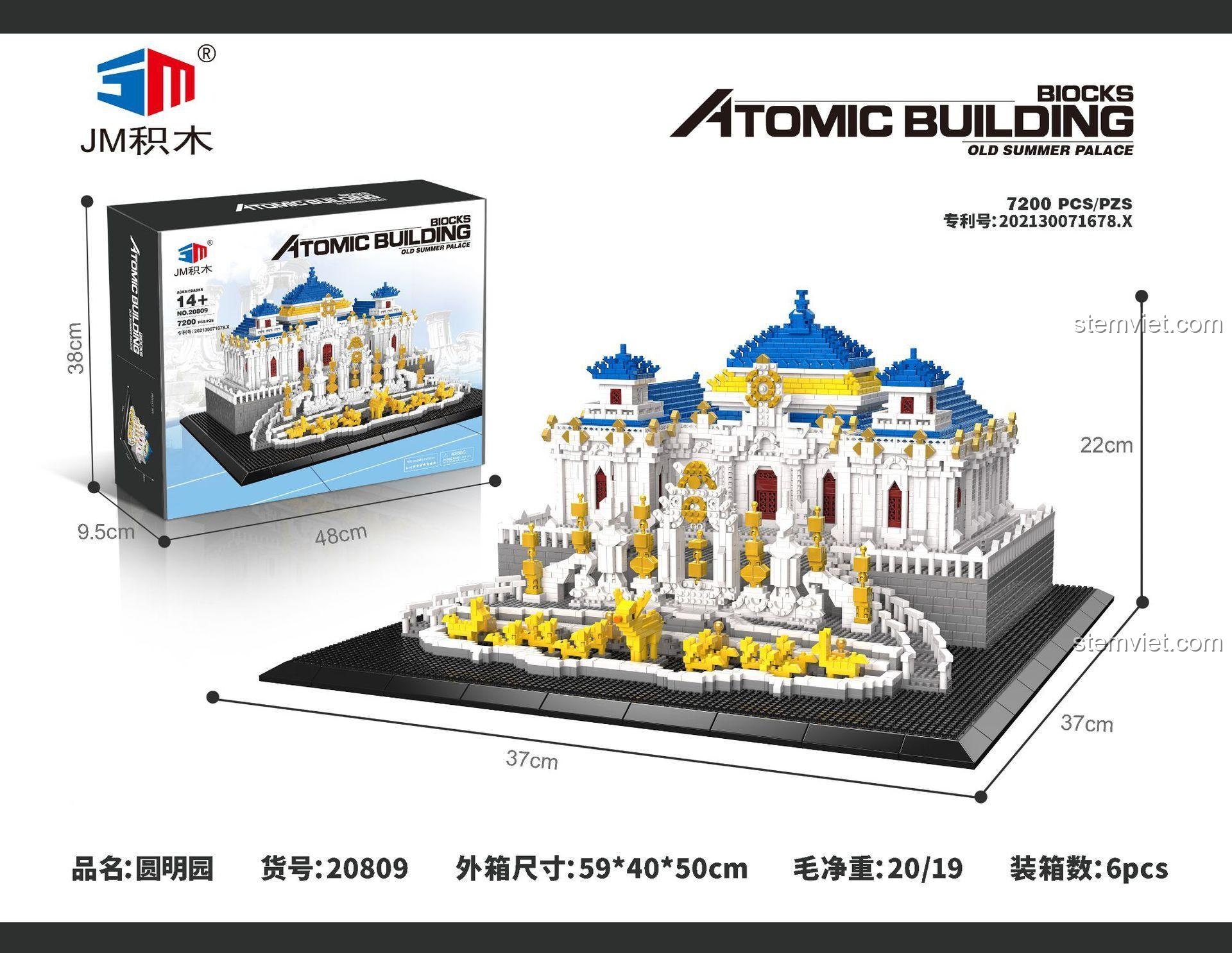Mỗi chi tiết của bộ xếp hình 20809 Viễn Doanh Quan Viên Minh Viên đều được chăm chút tỉ mỉ, tái hiện chân thực vẻ đẹp kiến trúc cổ Trung Quốc. Với màu sắc chủ đạo là Trắng, Xanh dương, Vàng và Đen, mô hình nổi bật với sự hài hòa và sang trọng. Kích thước sau khi hoàn thành là 37cm chiều dài, 37cm chiều rộng và 22cm chiều cao, tạo nên một tác phẩm trưng bày ấn tượng, đủ lớn để thể hiện sự hoành tráng nhưng vẫn gọn gàng để đặt ở nhiều không gian. Từng mảnh ghép nanoblock siêu nhỏ đòi hỏi sự tập trung và khéo léo, nhưng chính điều đó lại làm tăng thêm giá trị cho thành phẩm cuối cùng. Bạn sẽ kinh ngạc trước độ chính xác và sự tinh tế trong từng đường nét, từ mái ngói cong vút đến những cột trụ chạm khắc tinh xảo. Đây thực sự là một đồ chơi mô hình JM Bricks mang tính nghệ thuật cao, giúp người chơi cảm nhận sâu sắc về kiến trúc và thẩm mỹ.