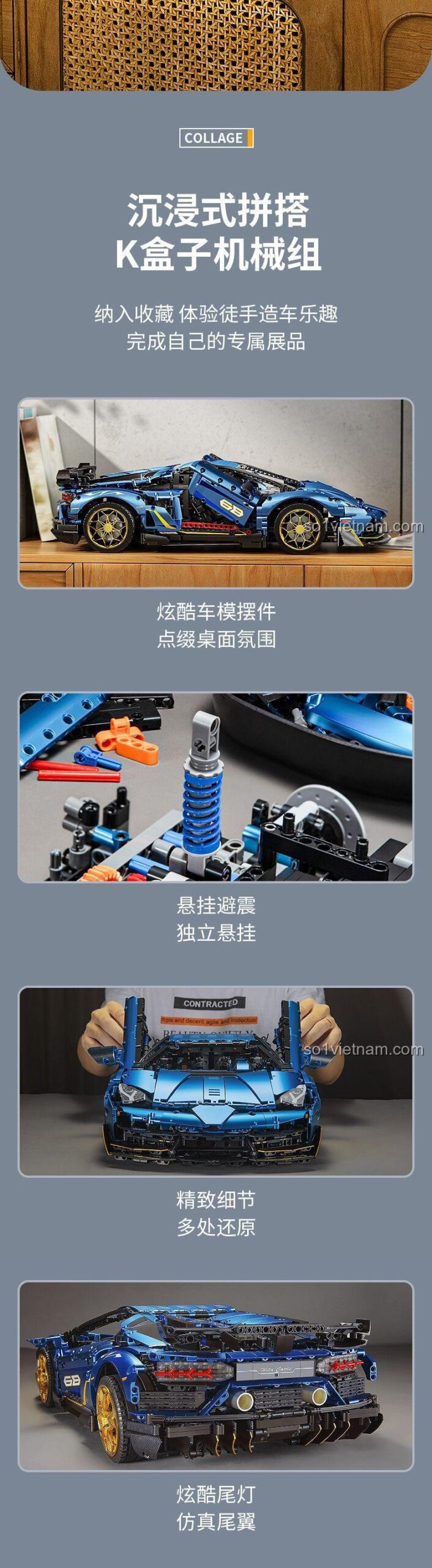 Chinh phục đỉnh cao tốc độ và kỹ thuật với bộ lắp ráp K-box 10520 – Siêu xe Lamborghini Aventador SVJ. Đây không chỉ là một món đồ chơi, mà là một kiệt tác cơ khí thực thụ với 3811 mảnh ghép, tái hiện hoàn hảo ‘Bò Mộng’ huyền thoại ở tỉ lệ 1:8 hoành tráng. Điểm nhấn không thể bỏ qua là lớp sơn xanh điện tử độc quyền, mang lại vẻ ngoài bóng bẩy, sang trọng và đầy cuốn hút. Bên trong là một cỗ máy phức tạp với hộp số tuần tự 4 cấp, động cơ V12 pít-tông chuyển động, hệ thống treo độc lập và cửa cắt kéo đặc trưng. Với chất lượng tương đương LEGO® Technic nhưng giá cả lại vô cùng hợp lý, đây là lựa chọn thông minh và tiết kiệm cho các nhà sưu tập và những người đam mê kỹ thuật, đặc biệt là các bạn nam từ 14 tuổi trở lên. Hãy tự mình trải nghiệm cảm giác lắp ráp một siêu xe đỉnh cao và sở hữu một mô hình trưng bày đầy kiêu hãnh!