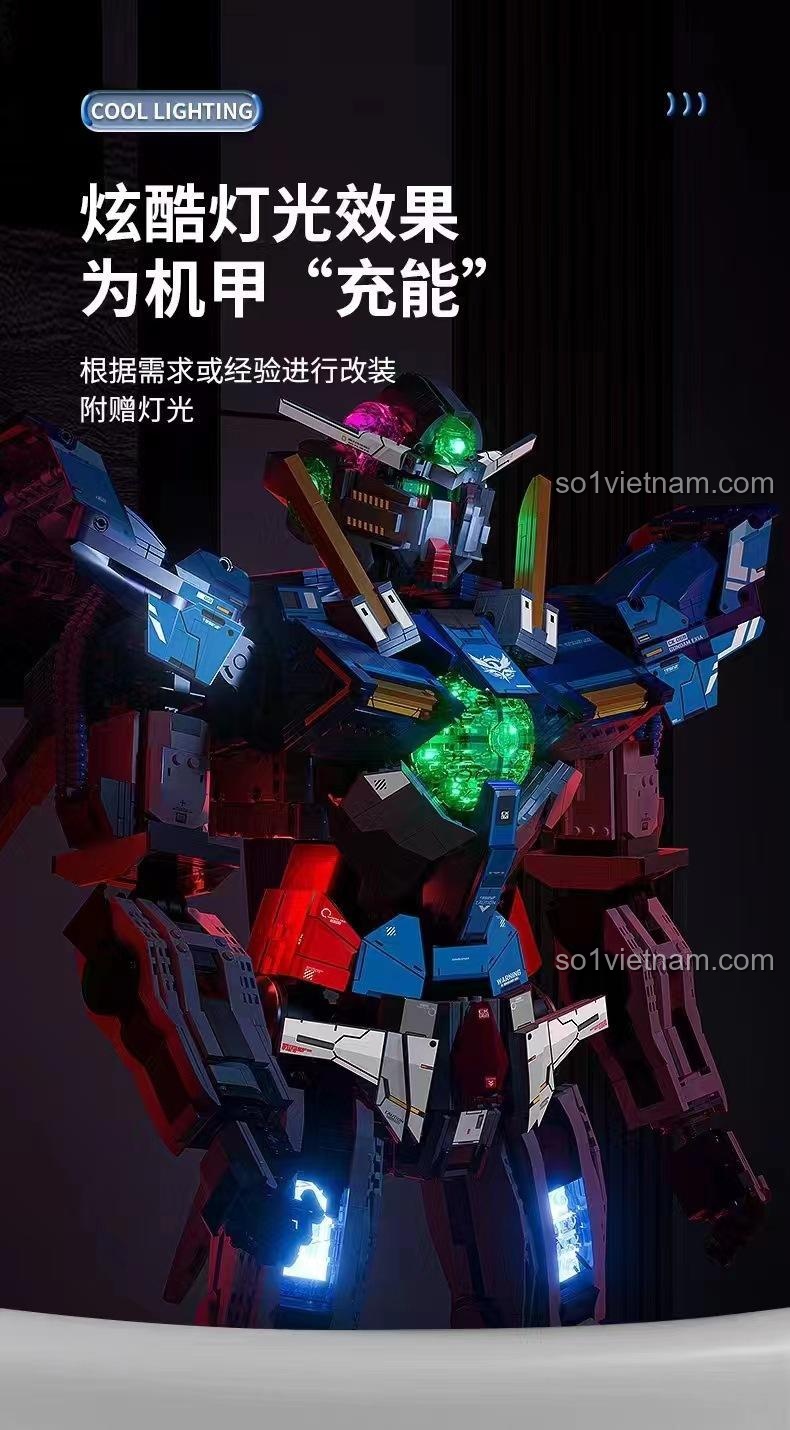 • Đèn LED: Hệ thống đèn LED được tích hợp tinh tế, đặc biệt là ở phần trung tâm của robot, tạo hiệu ứng ánh sáng lung linh, huyền ảo, biến mô hình trở nên sống động hơn bao giờ hết.