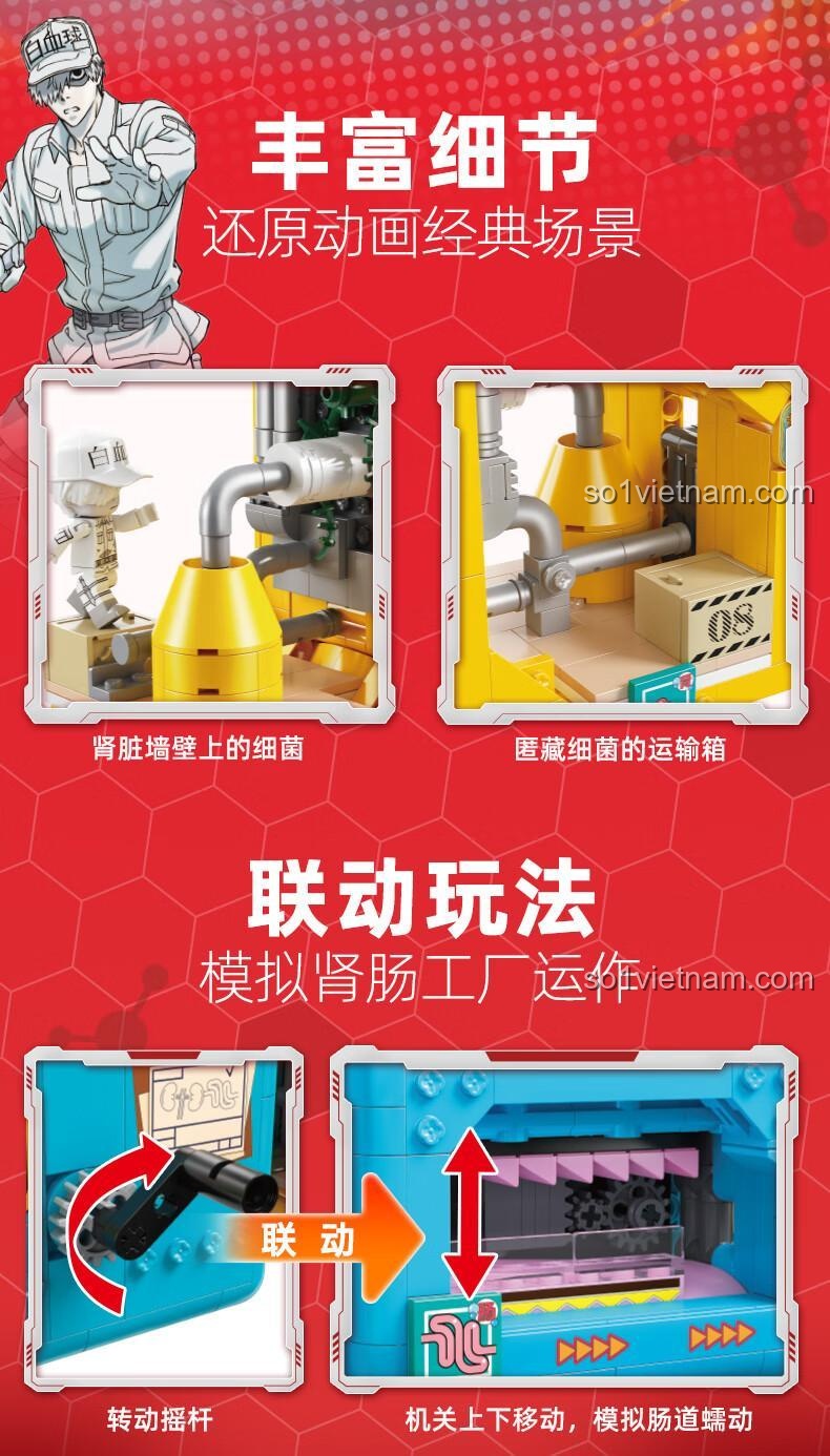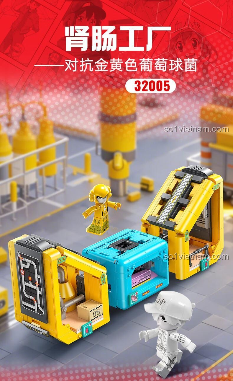 Chào bạn, một fan cứng của anime và thế giới lắp ráp! Bạn đã bao giờ tưởng tượng mình có thể bước vào chính thế giới bên trong cơ thể người, nơi hàng tỷ tế bào đang làm việc không ngừng nghỉ chưa? Lấy cảm hứng từ bộ anime đình đám “Tế Bào Biến Hình” (Cells at Work!), bộ lắp ghép Cảnh trong anime Tế Bào Biến Hình Kalos Blocks 32005 sẽ đưa bạn đến với một trong những phân cảnh đáng nhớ nhất: cuộc chiến tại Nhà Máy Thận & Ruột. Đây không chỉ là một nhà máy sản xuất thông thường, mà là một chiến trường thực sự, nơi anh chàng Bạch Cầu U-1146 dũng cảm phải đối mặt với sự xâm lăng của Tụ Cầu Vàng (Staphylococcus Aureus) nguy hiểm. Bộ đồ chơi này không chỉ tái hiện một mô hình, nó kể lại một câu chuyện về lòng dũng cảm, về cuộc chiến không ngừng nghỉ để bảo vệ cơ thể. Đây là cơ hội để cậu con trai 12 tuổi của bạn không chỉ giải trí mà còn hiểu thêm về những “anh hùng” thầm lặng bên trong chính mình, một cách trực quan và sinh động nhất.