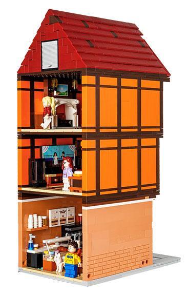 Đồ chơi mô hình 61005 là một tác phẩm nghệ thuật thực sự, tái hiện một cách tinh xảo vẻ đẹp của kiến trúc Châu Âu. Với chiều cao ấn tượng 34.6 cm, mô hình 3 tầng này nổi bật với tông màu cam chủ đạo, kết hợp hài hòa với mái ngói đỏ và các chi tiết khung gỗ đặc trưng. Điểm nhấn đặc biệt của Mô hình Quán Cà Phê Kalos Blocks chính là thiết kế module thông minh, cho phép bé dễ dàng tách rời từng tầng để khám phá không gian nội thất được chăm chút tỉ mỉ bên trong. Tầng trệt là quầy pha chế nhộn nhịp với máy pha cà phê, tủ bánh và những vật dụng nhỏ xinh. Các tầng trên là không gian thưởng thức cà phê ấm cúng với bàn ghế, đèn trang trí và cả một phòng áp mái bí mật. Với 1412 chi tiết, mỗi góc của quán cà phê đều kể một câu chuyện, mời gọi bé khám phá và sáng tạo.