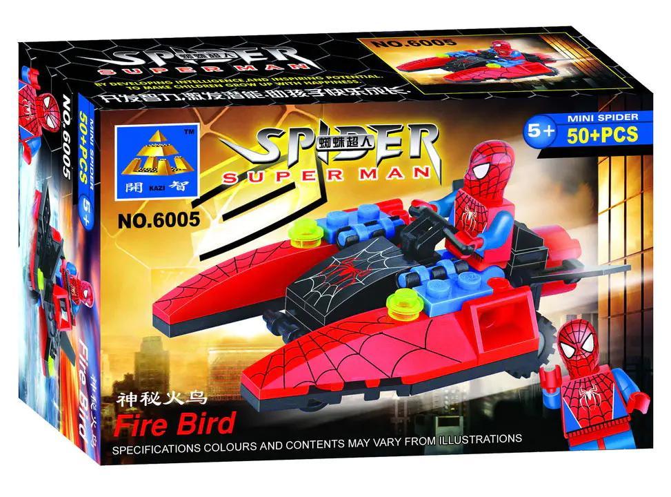 Bộ đồ chơi KAZI 6005 Spider-Man Fire Bird bao gồm 50 mảnh ghép.