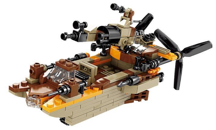 Mỗi mô hình nhỏ đều được thiết kế tỉ mỉ với màu sắc chủ đạo là nâu, đen, xám và cam, mang đậm phong cách quân đội dã chiến sa mạc, bụi bặm và mạnh mẽ. Nhưng đỉnh cao của sự sáng tạo chính là khi 16 cỗ máy chiến tranh này kết hợp lại. Một mô hình Tàu Truy Kích Komodo khổng lồ hiện ra, trang bị tận răng với súng máy, cánh quạt lớn và khoang chỉ huy, biến nó thành một pháo đài nổi bất khả xâm phạm. Thiết kế thông minh này không chỉ nhân niềm vui lên 16 lần, mà còn tạo ra một mô hình trưng bày cuối cùng cực kỳ ấn tượng.