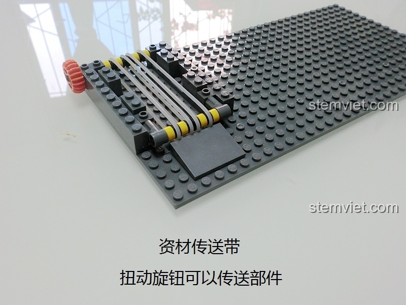 • Băng chuyền tài nguyên: Khu vực nạp liệu có một băng chuyền nhỏ, chỉ cần xoay bánh răng là có thể thấy nó chuyển động, như thể đang vận chuyển vật liệu quý giá để chế tạo vũ khí.