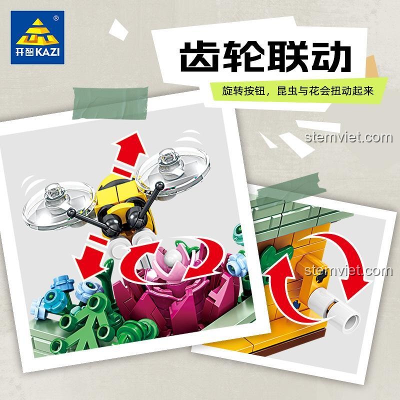 KAZI KY81114: Bộ Lắp Ghép Vườn Hoa Côn Trùng Chuyển Động (661 Mảnh Ghép) – Khu Vườn Cơ Khí