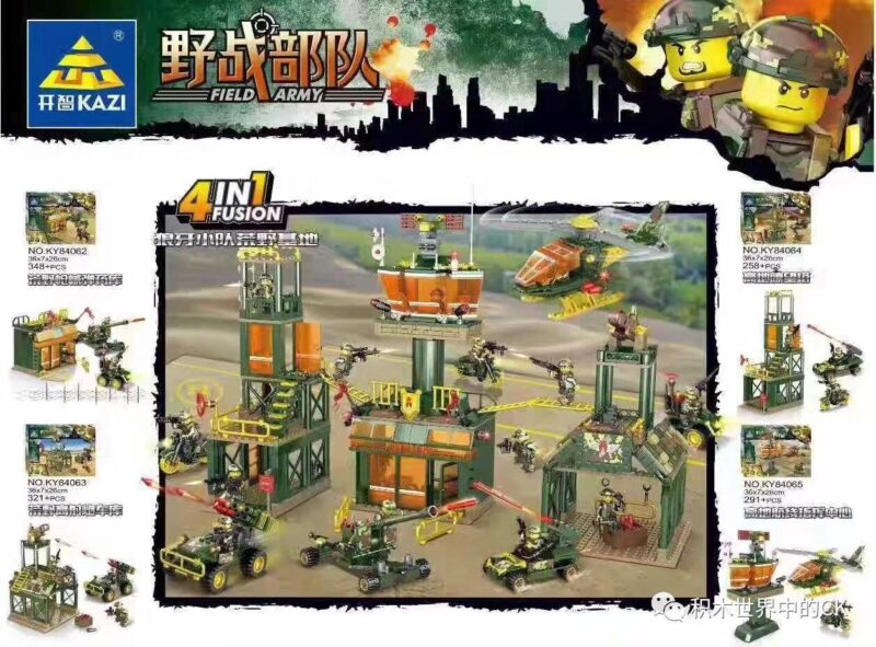 Điểm đặc biệt của mô hình quân sự KY84064 là khả năng lắp ráp thành 4 mô hình riêng biệt (Kho vũ khí, Nhà để xe pháo phòng không, Tháp quan sát, Trung tâm chỉ huy) và sau đó có thể kết hợp tất cả lại để tạo thành một căn cứ quân sự tổng hợp lớn. Tổng cộng là 4 kiểu lắp ráp chính và 1 kiểu kết hợp.