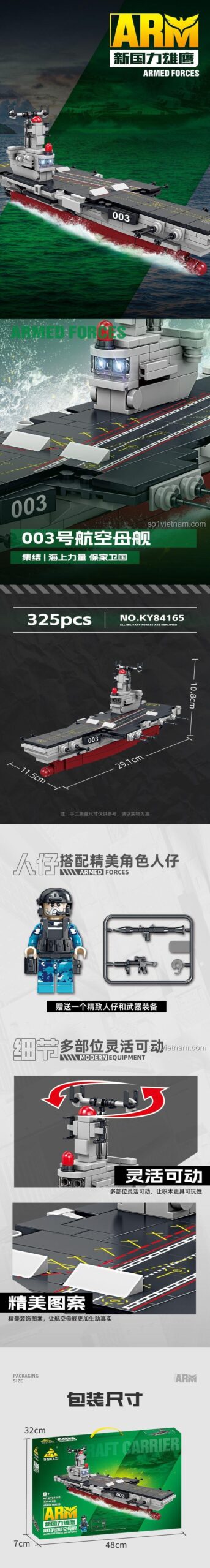 Bộ lắp ghép Tàu Sân Bay Fujian 003 KAZI KY84165 có tổng cộng 325 mảnh ghép.