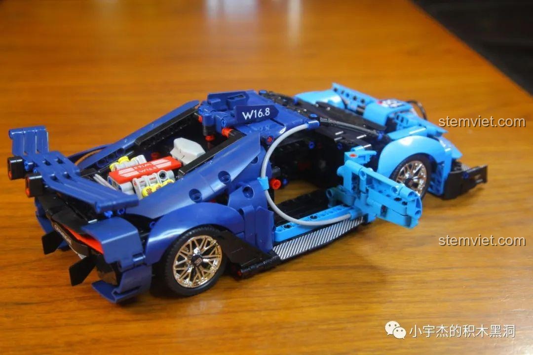 KBOX 10213 không chỉ là một mô hình tĩnh để trưng bày. Ẩn sau vẻ ngoài hào nhoáng là một kết cấu Technic phức tạp, mang đến những tính năng cơ khí thú vị. Cả hai cánh cửa xe đều có thể mở ra, để lộ khoang lái được thiết kế chi tiết với vô lăng, ghế ngồi và bảng điều khiển. Phía sau, nắp động cơ có thể mở lên, phô diễn khối động cơ W16 được tái hiện một cách ấn tượng với các chi tiết pít-tông, dây dẫn. Hệ thống bánh xe được kết nối với vô lăng, cho phép điều khiển hướng lái một cách linh hoạt. Đặc biệt, bộ khung gầm được thiết kế thông minh, để lại không gian trống cho phép những người chơi đam mê độ chế có thể dễ dàng nâng cấp thêm bộ động cơ và điều khiển từ xa (RC) để biến chiếc siêu xe tĩnh thành một cỗ máy tốc độ thực thụ. Đây chính là điểm cộng lớn, khuyến khích sự sáng tạo và khám phá không giới hạn.