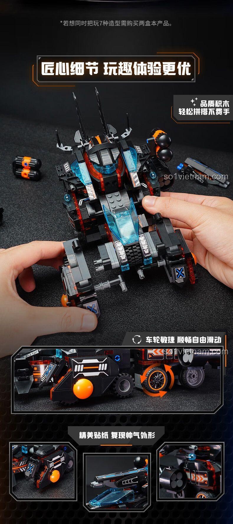 Điểm nhấn đặc biệt của Keeppley 41111 chính là khả năng biến hình và kết hợp linh hoạt. Bé có thể tự do lắp ráp 6 mô hình phương tiện khác nhau, sau đó sáng tạo bằng cách kết hợp chúng lại để tạo thành một robot khổng lồ mạnh mẽ. Điều này không chỉ mang lại sự hứng thú mà còn kích thích khả năng tư duy hệ thống, giải quyết vấn đề và định hướng không gian cho trẻ.