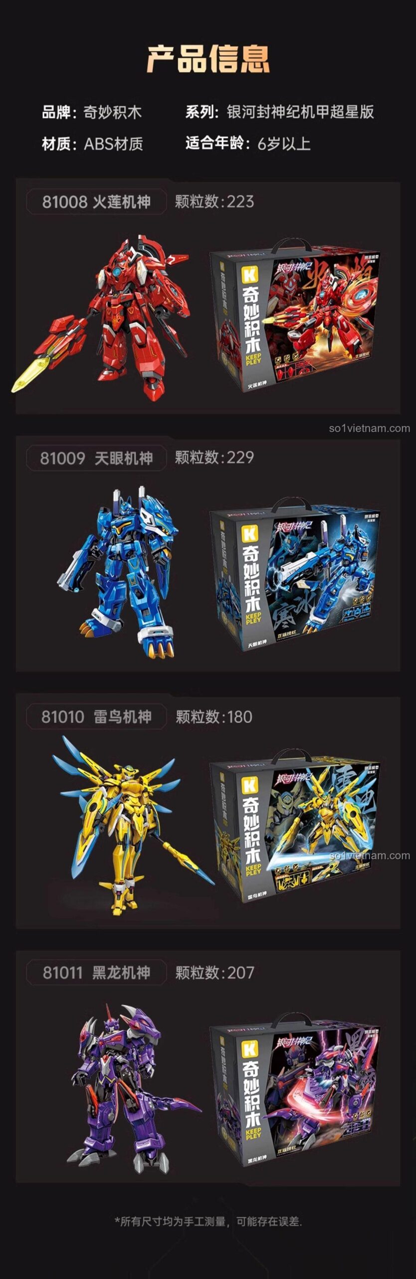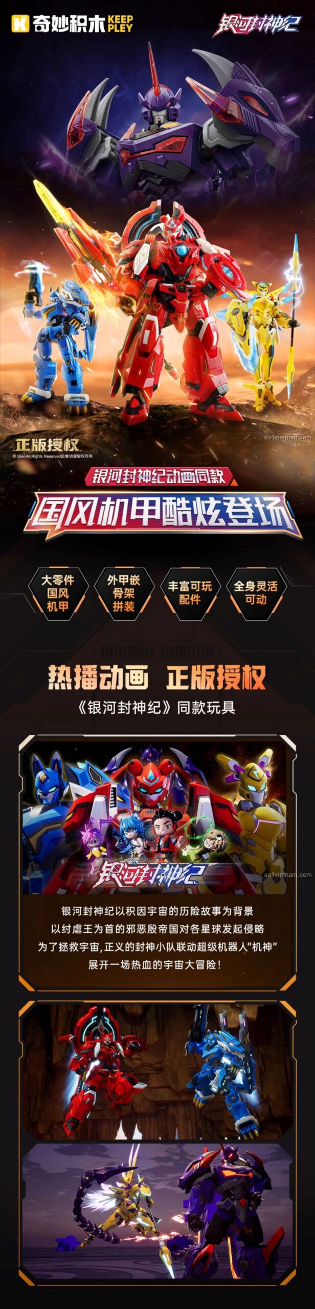 Chào mừng bạn đến với thế giới của Hắc Long Cơ Thần Keeppley 81011, một tuyệt tác đến từ bộ sưu tập Siêu Bản Ngân Hà Phong Thần Ký! Bộ lắp ghép này không chỉ là một món đồ chơi, mà còn là cánh cửa mở ra một vũ trụ đầy phiêu lưu và những trận chiến đỉnh cao. Ngân Hà Phong Thần Ký là một bộ phim hoạt hình Trung Quốc đầy hấp dẫn, nơi các Cơ Thần hùng mạnh chiến đấu để bảo vệ sự cân bằng của vũ trụ. Hắc Long Cơ Thần, với sức mạnh và vẻ ngoài uy lực, là một trong những chiến binh đáng gờm nhất. Khi bé lắp ráp và nhập vai cùng Hắc Long Cơ Thần, bé sẽ được hòa mình vào câu chuyện sử thi, nơi lòng dũng cảm và trí tuệ được thử thách. Đây là món quà tuyệt vời, khơi gợi trí tưởng tượng và niềm đam mê khám phá thế giới khoa học viễn tưởng cho các bé trai từ 6 tuổi.