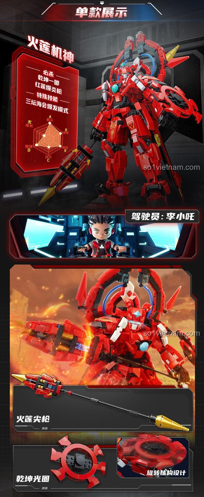 - Chi tiết chân thực: Từng bộ phận trên Hỏa Liên Cơ Thần đều được thiết kế tỉ mỉ, từ giáp vai, cánh tay, chân cho đến vũ khí. Các khớp nối linh hoạt cho phép tạo ra nhiều tư thế chiến đấu đa dạng, sống động.
