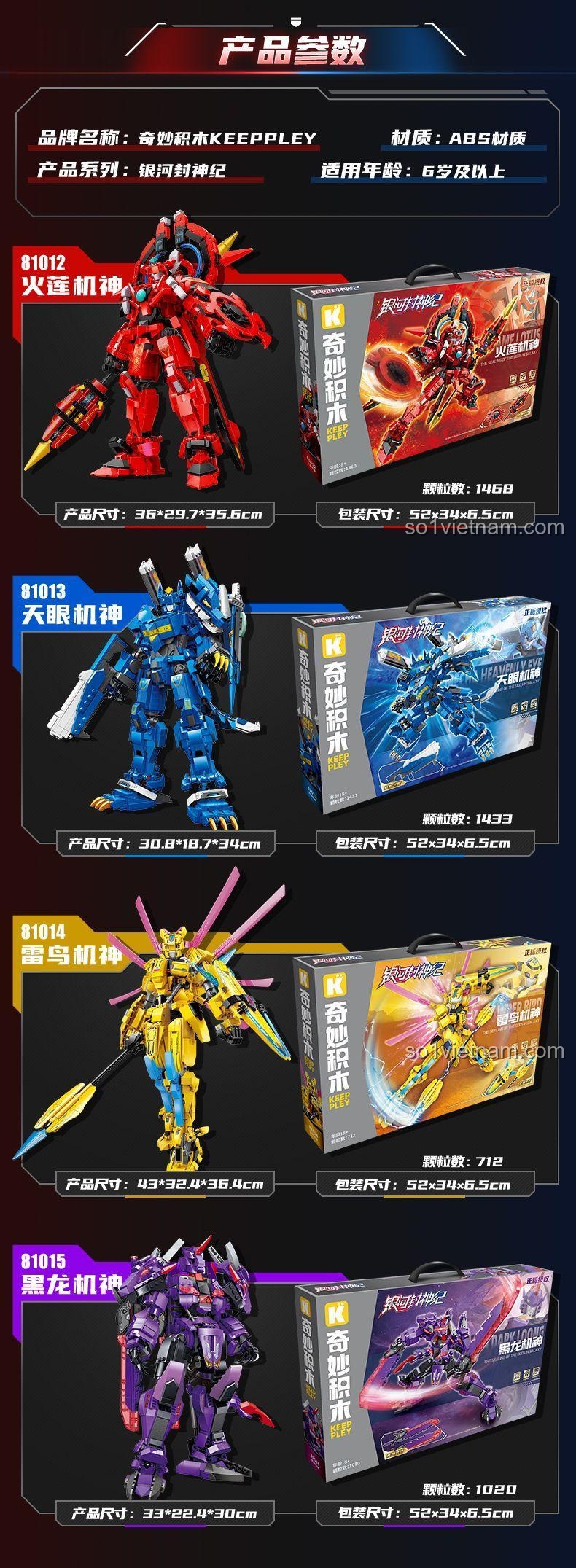 Chào mừng bạn đến với thế giới của những chiến binh robot đỉnh cao! Bộ lắp ghép Keeppley 81012 mang đến Hỏa Liên Cơ Thần, một biểu tượng sức mạnh đến từ vũ trụ “Ngân Hà Phong Thần Ký”. Với 1468 mảnh ghép tinh xảo, đây không chỉ là một món đồ chơi, mà còn là một tác phẩm nghệ thuật, một thử thách trí tuệ và một cánh cửa mở ra thế giới phiêu lưu kỳ thú.