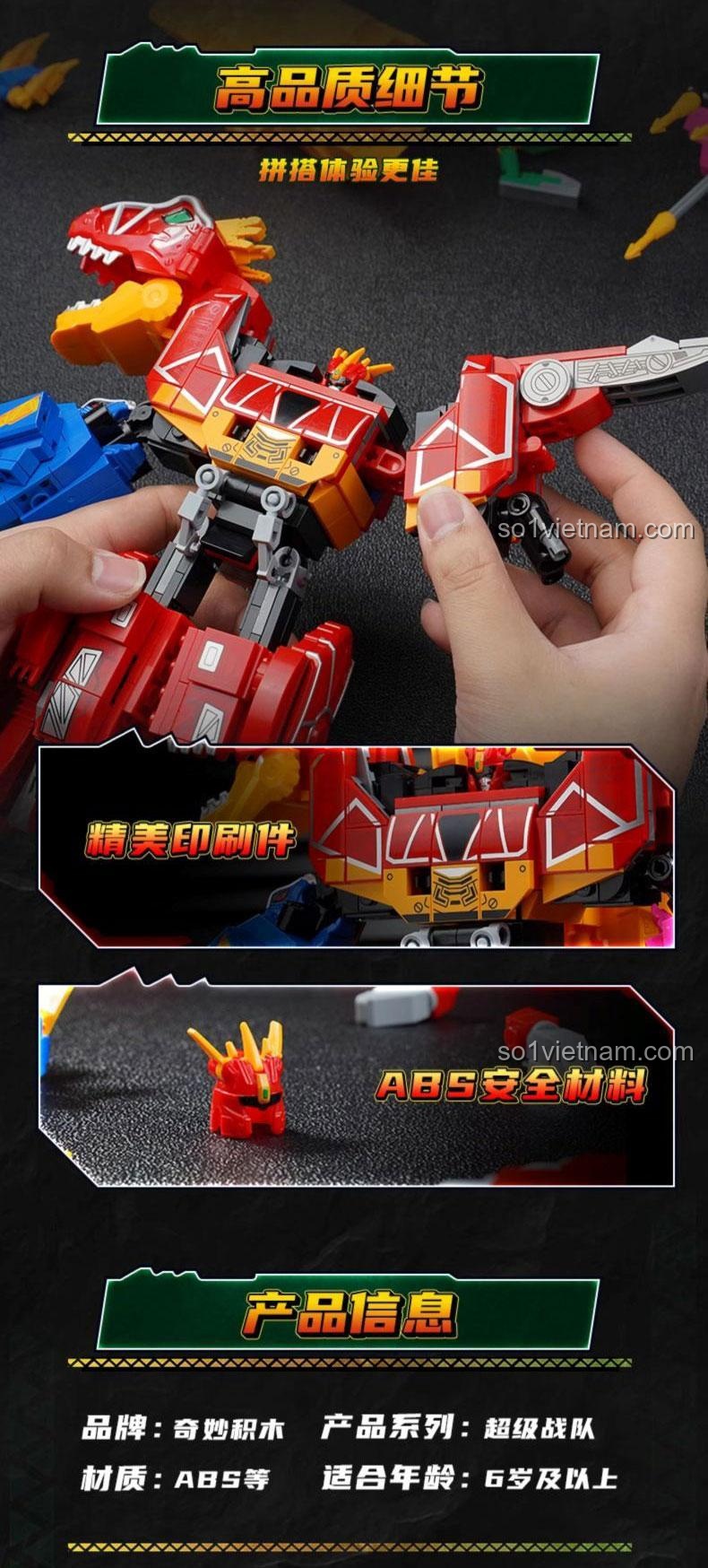 Mẹ có con trai 6 tuổi thân mến, có phải bé nhà mình luôn ao ước được trở thành một siêu anh hùng, sát cánh cùng những cỗ máy chiến đấu khổng lồ để bảo vệ chính nghĩa? Hãy biến ước mơ đó thành hiện thực với bộ lắp ghép Keeppley 82003, tái hiện lại Khủng Long Dricera – một trong những Zyudenryu (Khủng Long Điện Thú) huyền thoại từ series phim “Zyuden Sentai Kyoryuger” (Chiến đội Khủng long Điện thú) đình đám của Nhật Bản. Dricera không chỉ là một cỗ máy, mà còn là người bạn đồng hành trung thành của Kyoryu Pink, đại diện cho sức mạnh của loài khủng long ba sừng (Triceratops) dũng mãnh. Với bộ đồ chơi này, bé không chỉ lắp ráp một mô hình, mà còn đang triệu hồi một người hùng từ màn ảnh, sẵn sàng cho những cuộc phiêu lưu kỳ thú ngay trong phòng khách. Đây là cơ hội tuyệt vời để bé tìm hiểu về lòng dũng cảm, tinh thần đồng đội và sức mạnh của việc bảo vệ những điều tốt đẹp.