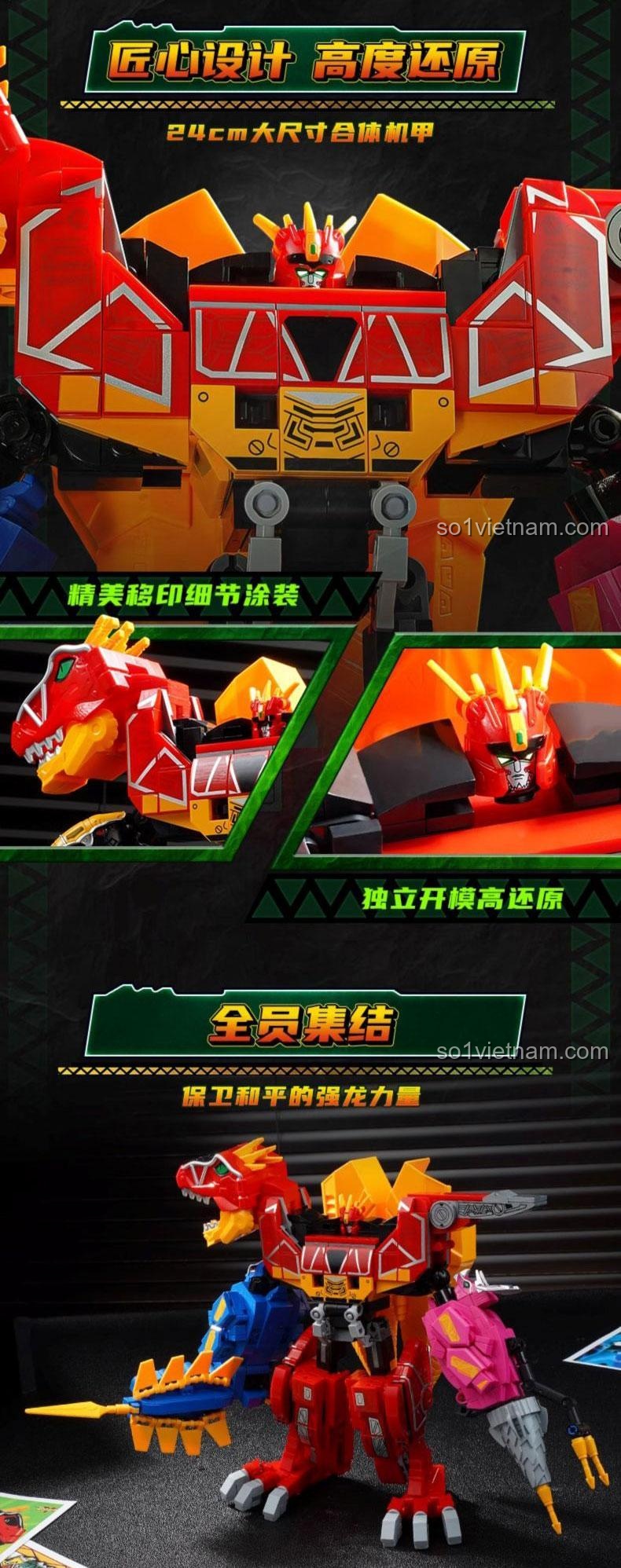 Đây là điểm đặc biệt nhất! Mô hình Dricera 82003 có thể kết hợp với 4 bộ khác cùng series là 82001, 82002, 82004, và 82005 để tạo thành siêu robot Kyoryujin khổng lồ.