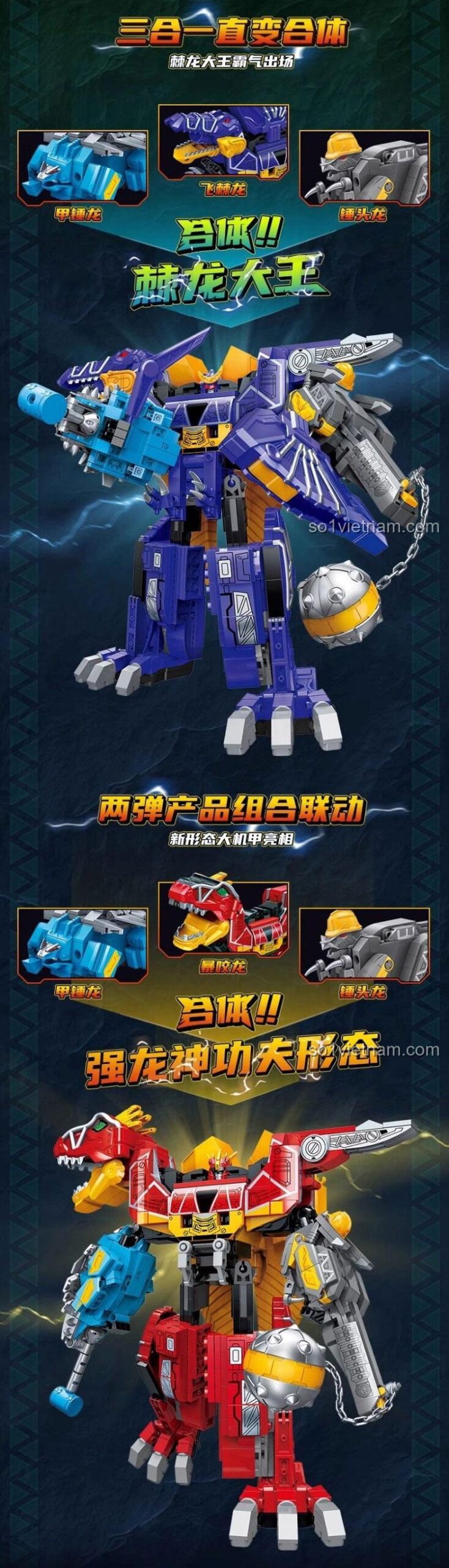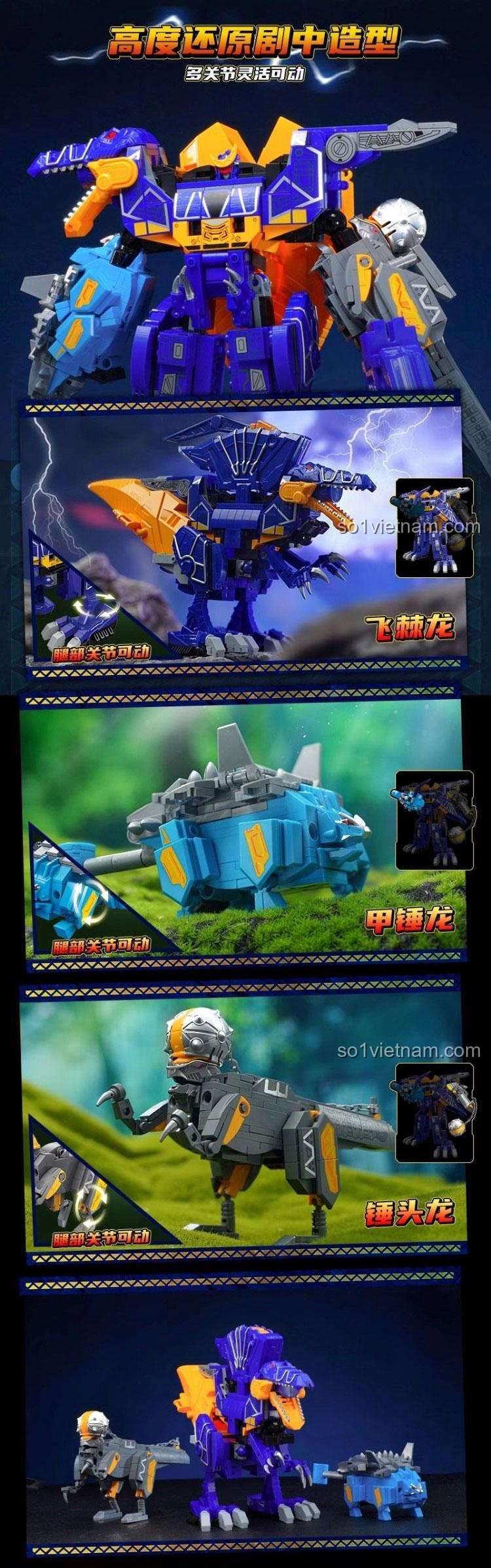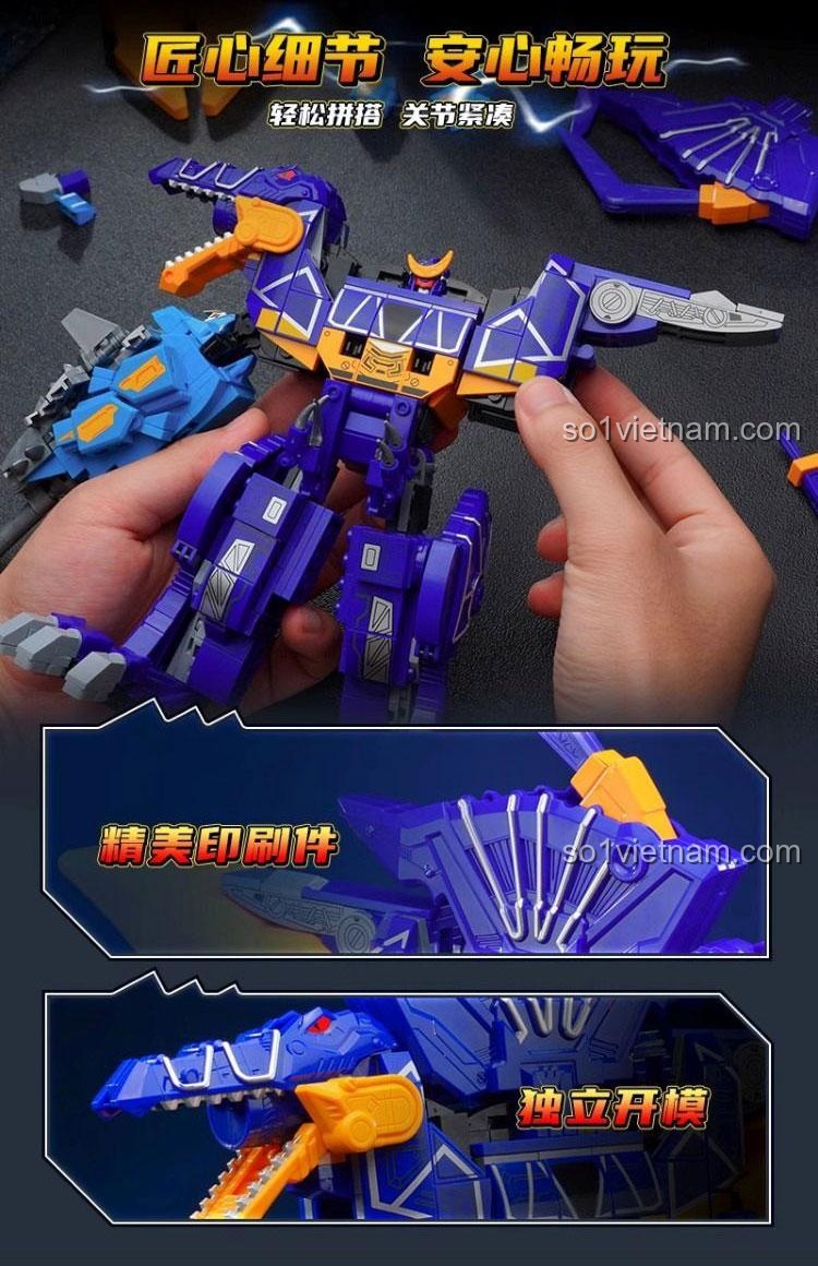 • Biến hình linh hoạt: Từ robot khủng long bay uyển chuyển, robot khủng long giáp trụ vững chãi, đến robot khủng long đầu lâu đầy uy lực.