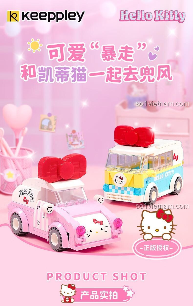 Keeppley K20806 Hello Kitty Mini Bus – Bộ Lắp Ghép Xe Buýt Phong Cách Retro
