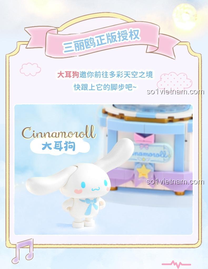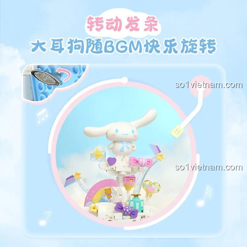 • Mô hình Cinnamoroll đáng yêu: Nhân vật Cinnamoroll được tái hiện sinh động với các chi tiết nhỏ xinh, tạo điểm nhấn cho toàn bộ hộp nhạc.