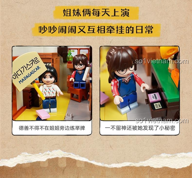 Rất giống! Các nhà thiết kế của Keeppley đã nghiên cứu rất kỹ tạo hình và trang phục của các nhân vật trong phim để tạo ra những minifigure có hồn và dễ nhận biết nhất, từ mái tóc ngố của Deok-sun đến cặp kính của Bo-ra.