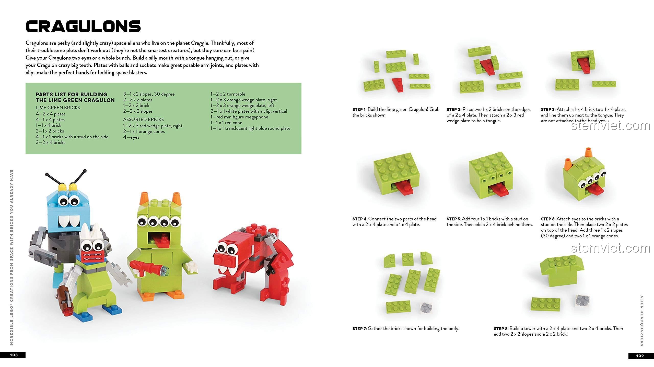 Tất cả các mô hình đều được xây dựng từ các loại gạch LEGO® tiêu chuẩn (Tương thích LEGO®), nghĩa là bé có thể dễ dàng tìm thấy các mảnh ghép trong bộ sưu tập của mình. Hơn nữa, sách còn khuyến khích sự tùy biến, cho phép bé thay đổi màu sắc hoặc thêm thắt các chi tiết để tạo ra phiên bản độc nhất của riêng mình.