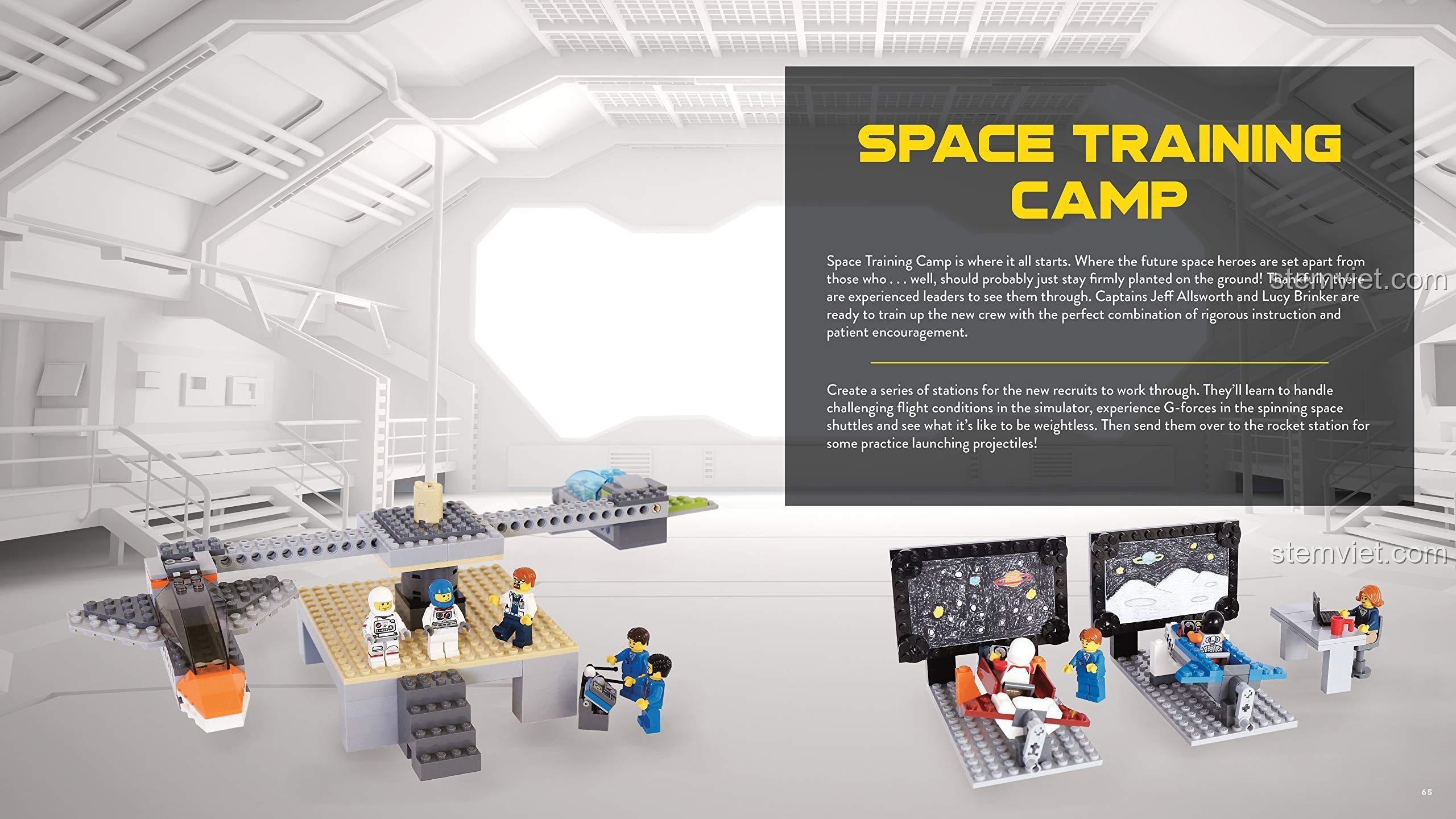 - Căn cứ và trạm không gian: Bé có thể xây dựng cả một Trạm Huấn Luyện Không Gian (Space Training Camp) với các khu vực mô phỏng bay, huấn luyện không trọng lực, và bệ phóng tên lửa.