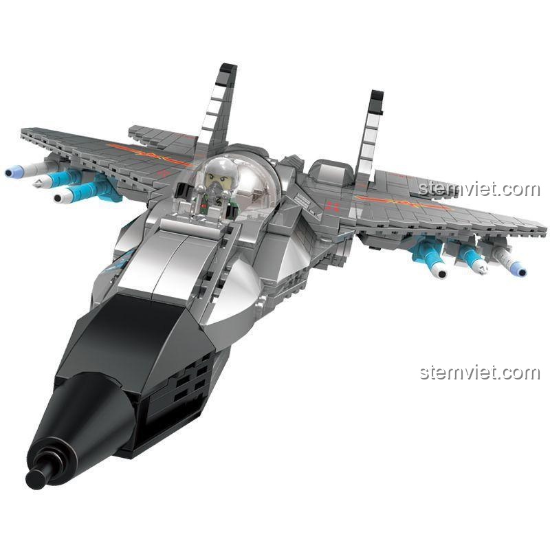 Điểm nhấn đặc biệt nhất chính là hệ thống vũ khí đa dạng. Với 12 tên lửa có thể tháo lắp, bé có thể “trang bị” cho chiếc J-16 của mình theo từng kịch bản chiến đấu: tên lửa không đối không cho những trận dogfight gay cấn, hay tên lửa không đối đất cho các nhiệm vụ tấn công mục tiêu. Bộ sản phẩm còn đi kèm một chiếc đế trưng bày chuyên dụng, giúp chiếc J-16 có thể “bay” lượn ngay trong phòng ngủ của bé, tạo nên một góc trang trí đầy tự hào và cá tính. Các chi tiết được thiết kế theo chuẩn Tương thích LEGO®, cho phép bé dễ dàng kết hợp và mở rộng thế giới sáng tạo của mình với các bộ lắp ráp khác.